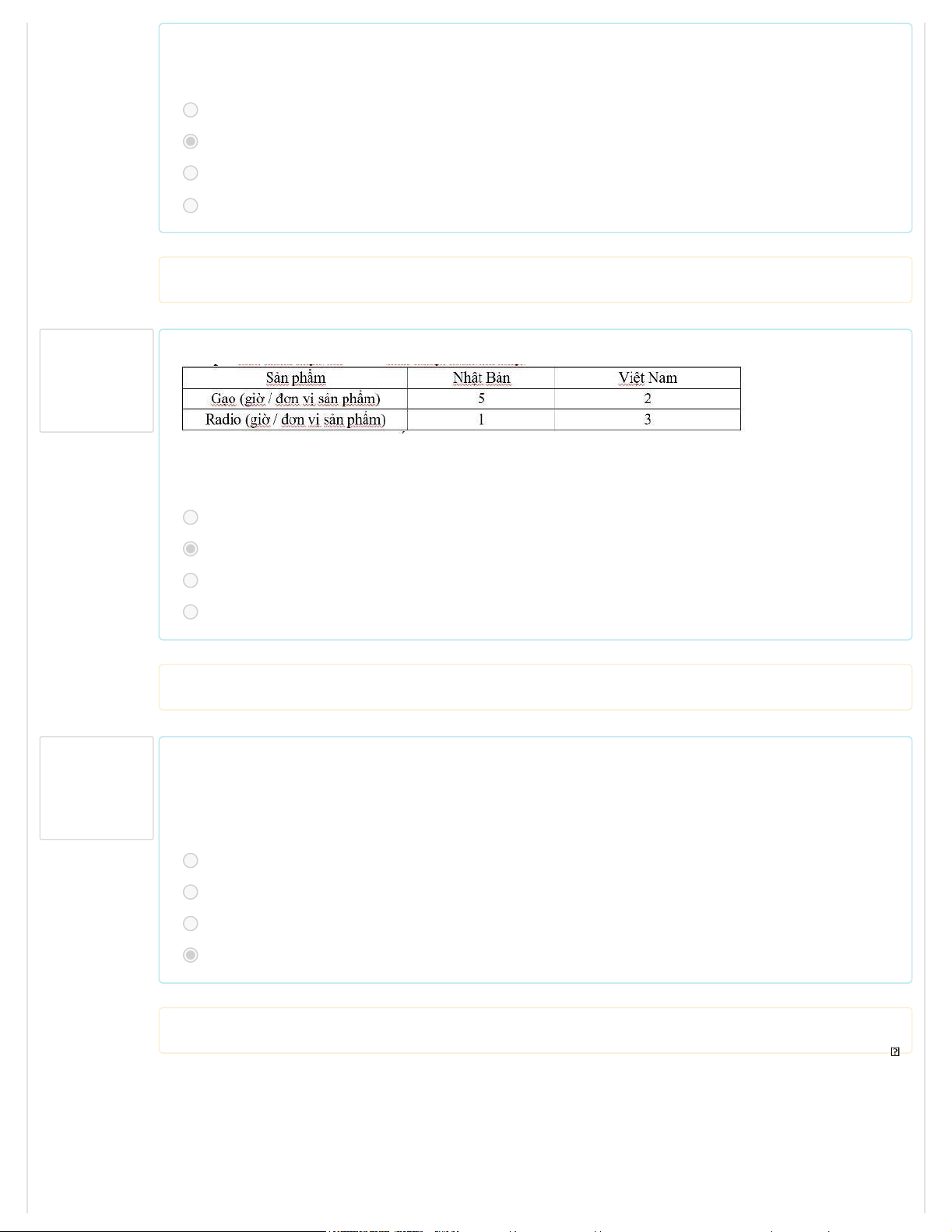 Cho chi phí sản xuất Gạo và Radio của Nhật Bản và Việt Nam  Hoàn thành  Đạt iểm 0,00 trên  1,00