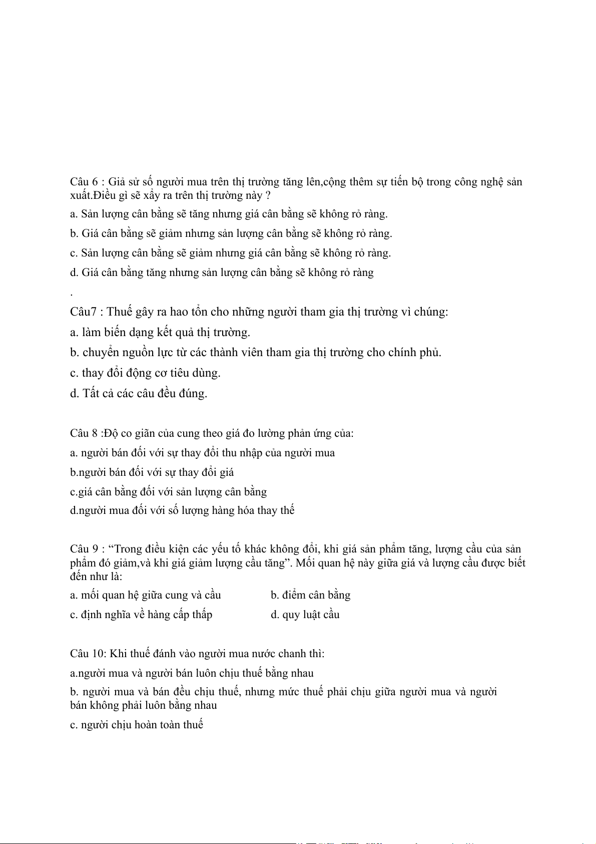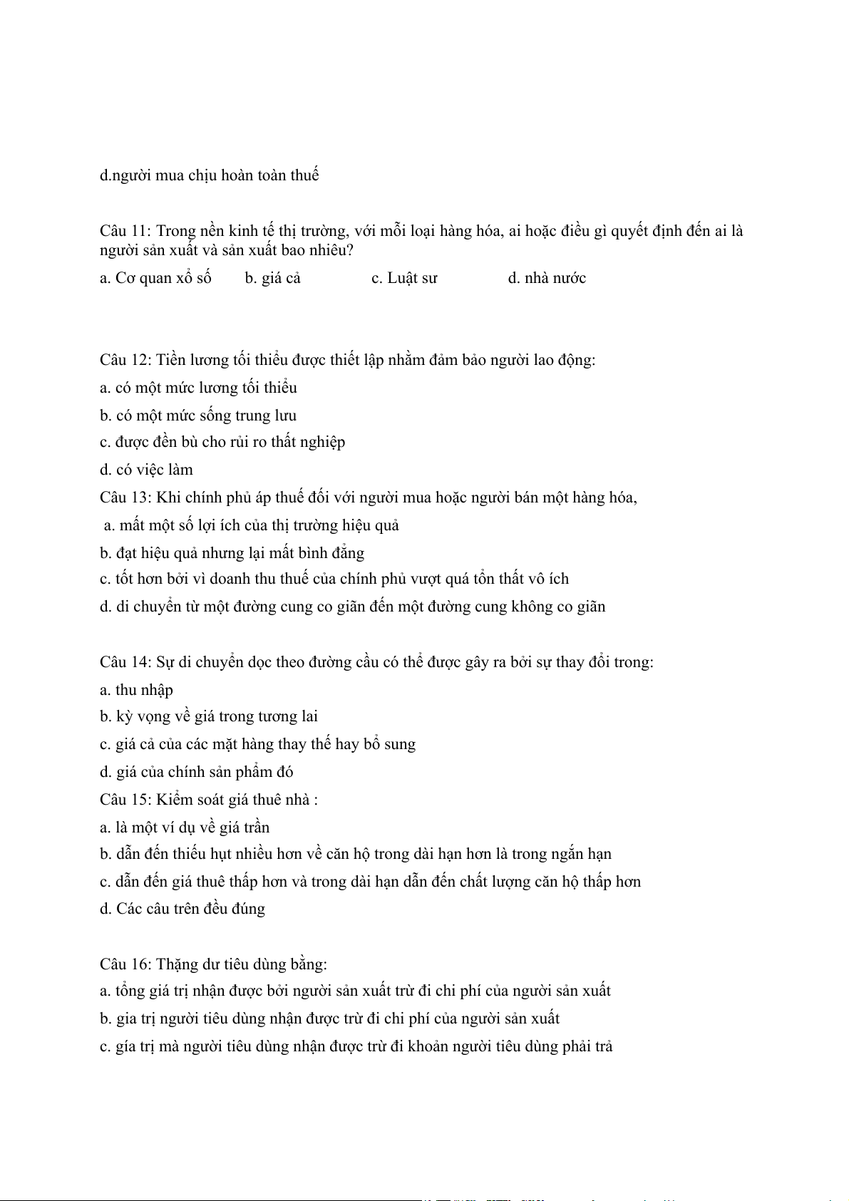 Câu 13: Khi chính phủ áp thuế đối với người mua hoặc người bán một hàng hóa,