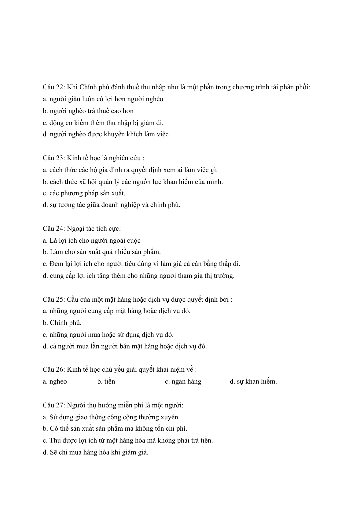 Câu 22: Khi Chính phủ đánh thuế thu nhập như là một phần trong chương trình tái phân phối: