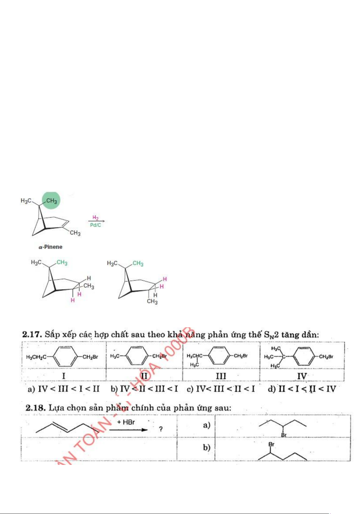 Câu 69: α-Pinene là một diterpene có trong tinh dầu thông. Hidro hóa hợp chất này với xúc tác Pd/C. Sản phẩm tạo thành là: A. B.