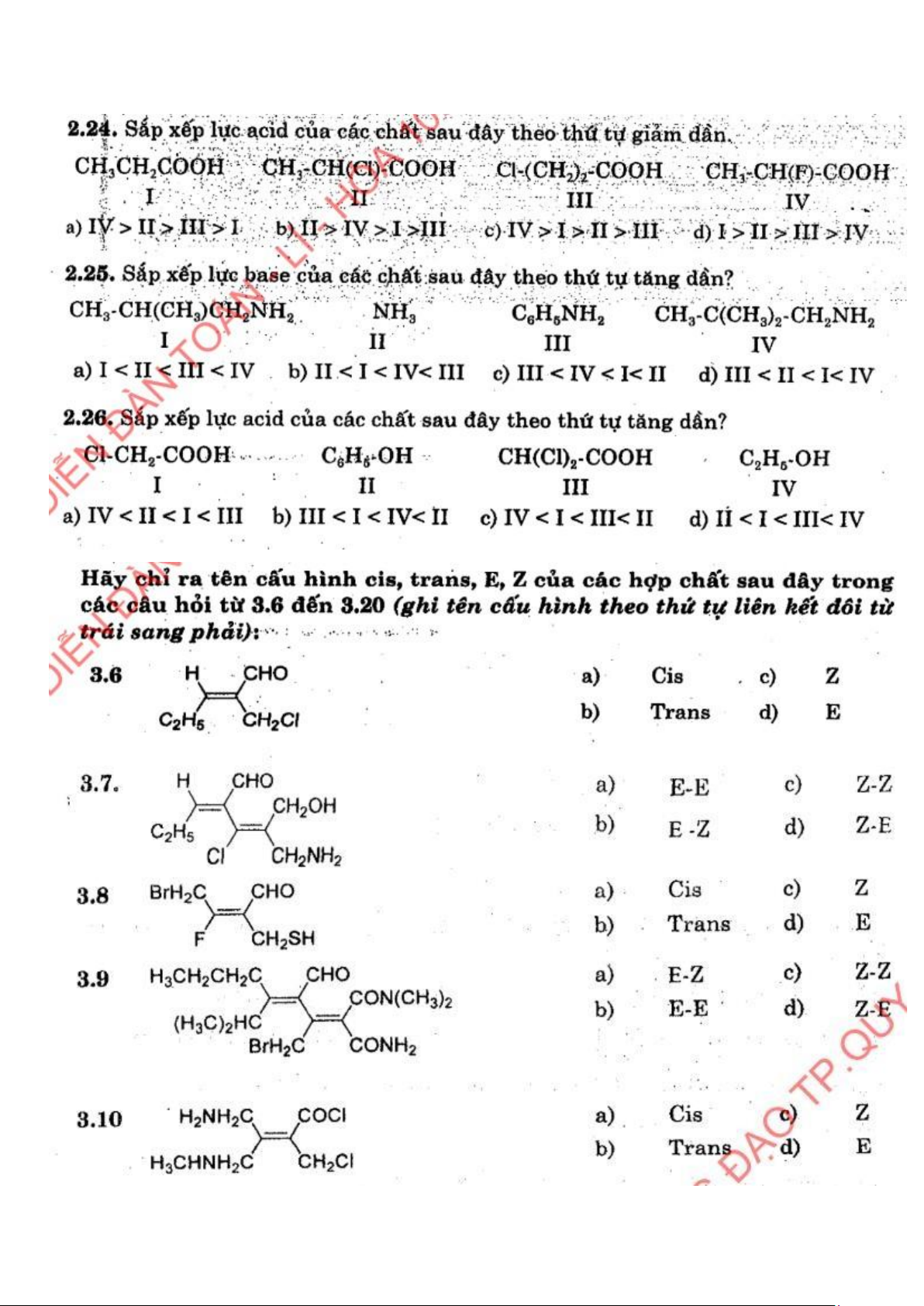 BÀI TẬP TRẮC NGHIỆM ÔN TẬP HÓA ĐẠI CƯƠNG – HÓA HỮU CƠ