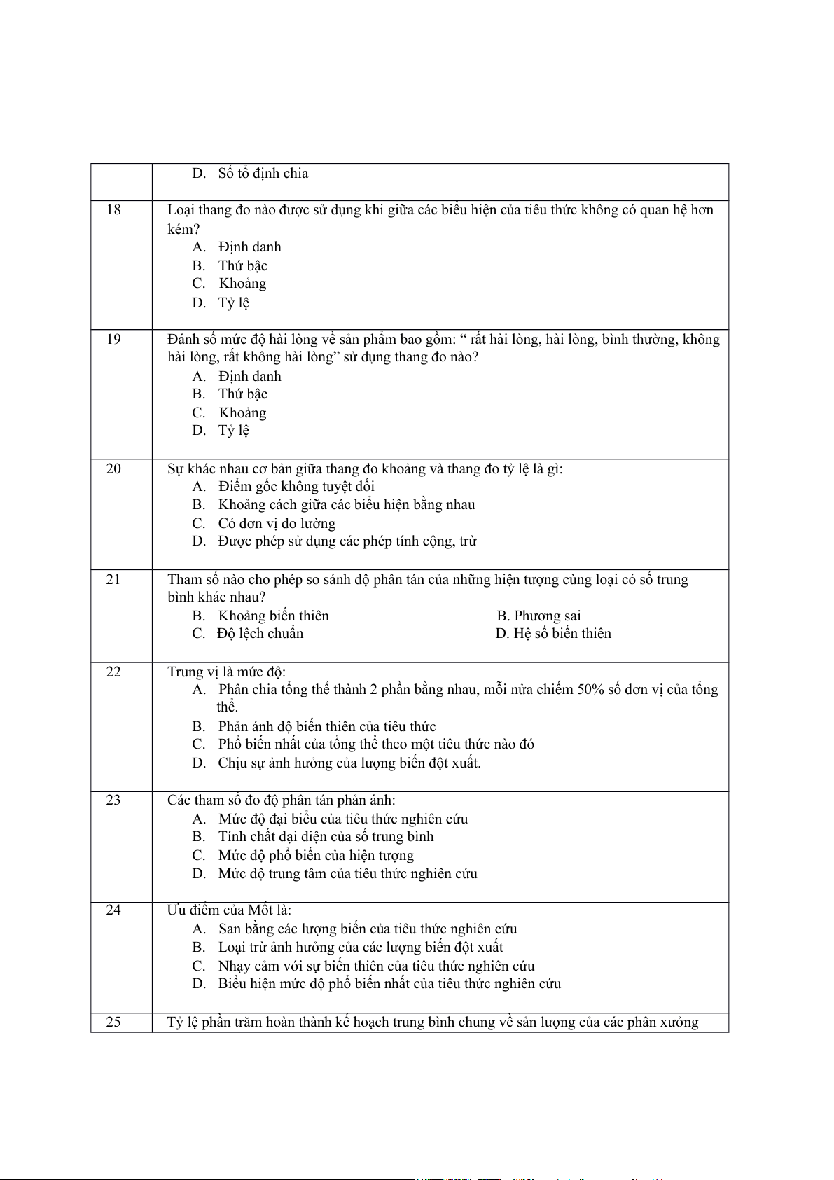 hài lòng, rất không hài lòng” sử dụng thang đo nào? A. Định danh B. Thứ bậc C. Khoảng D. Tỷ lệ 20