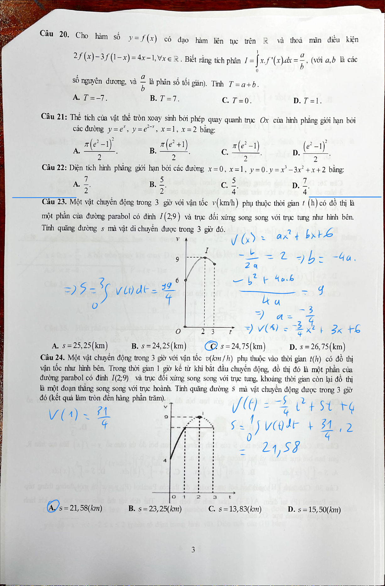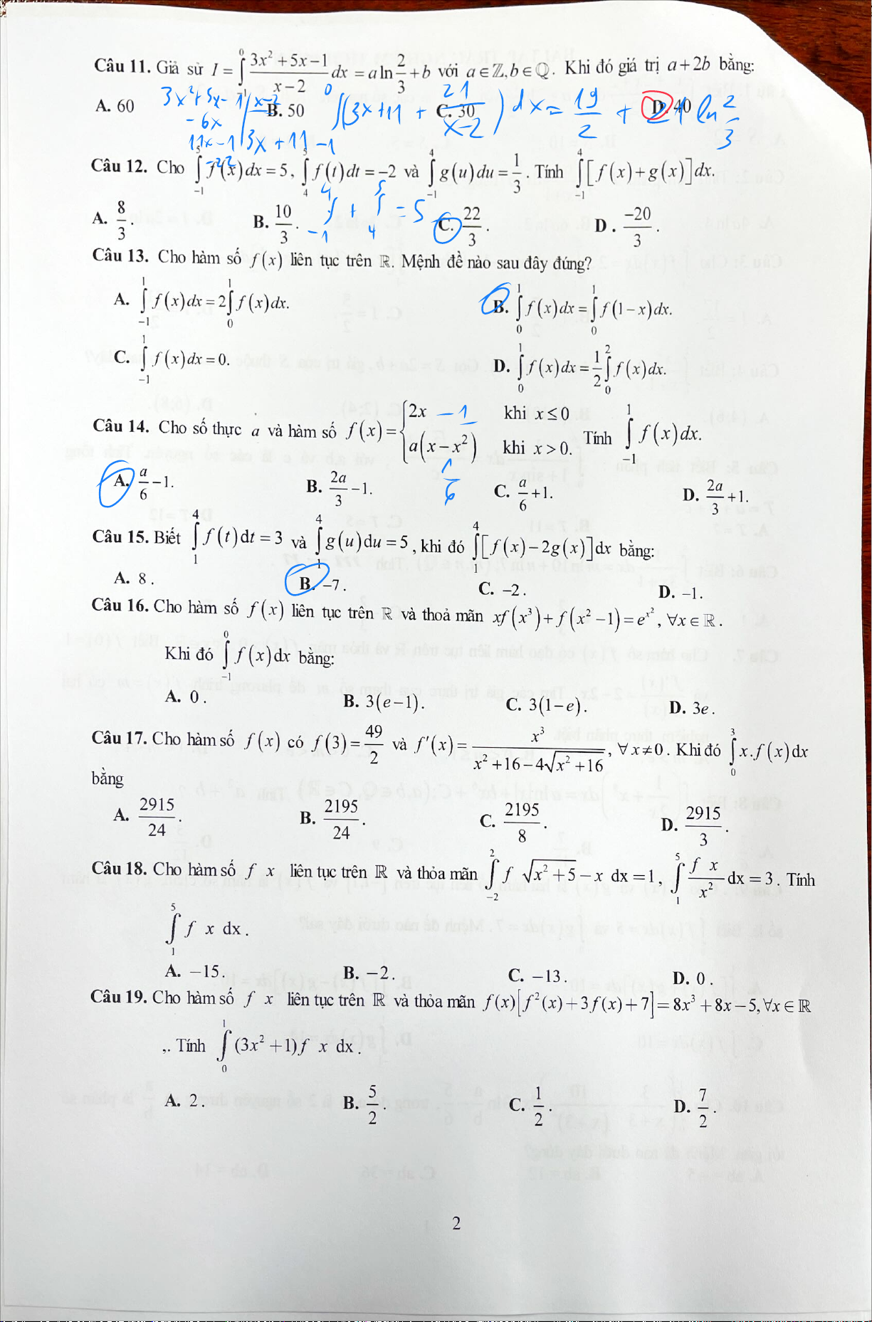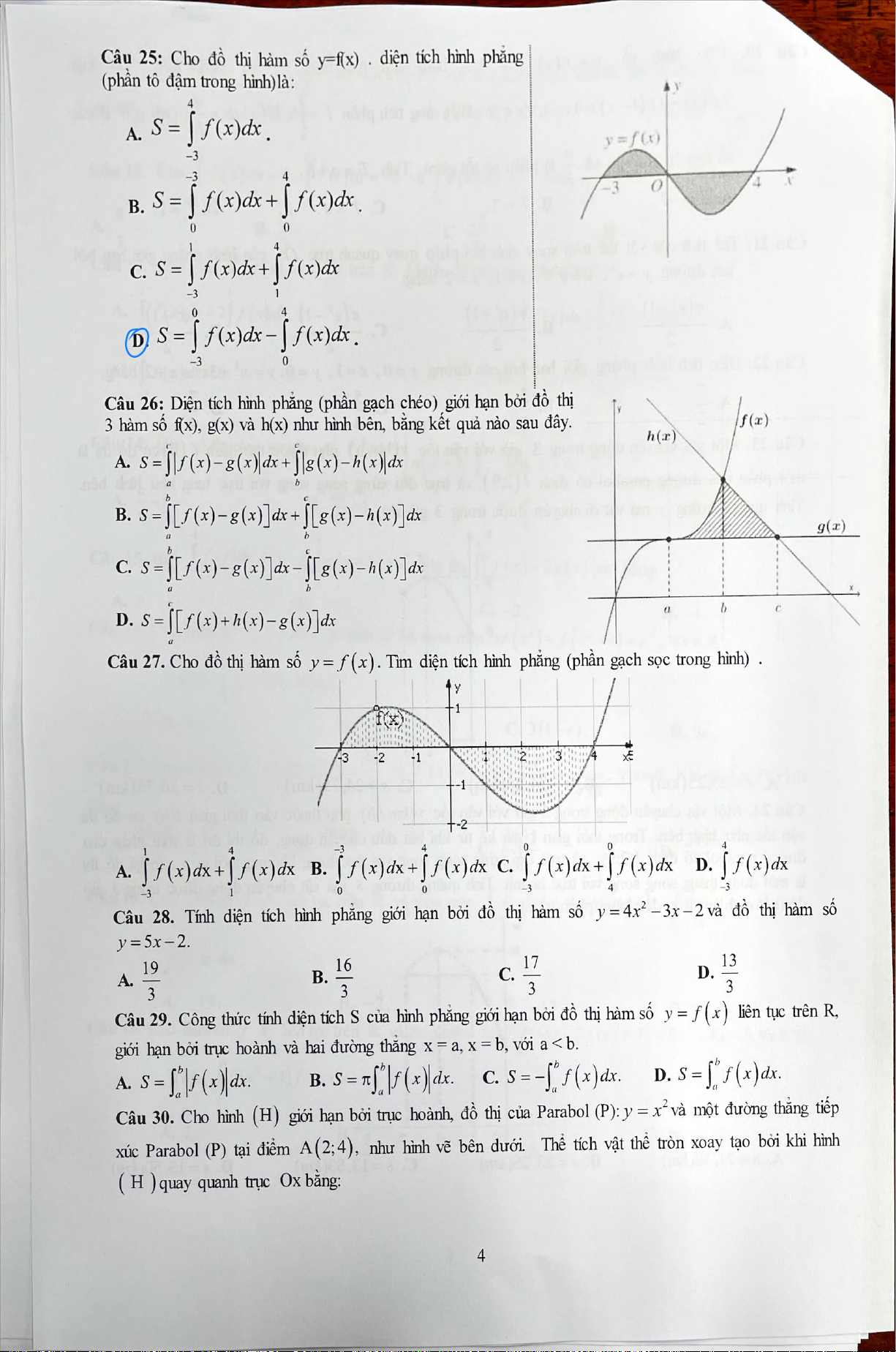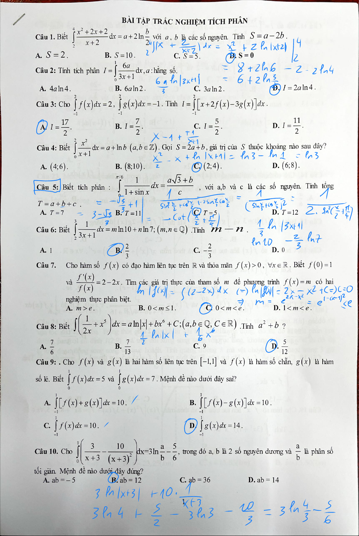 Bài tập trắc nghiệm Tích phân môn Toán 12