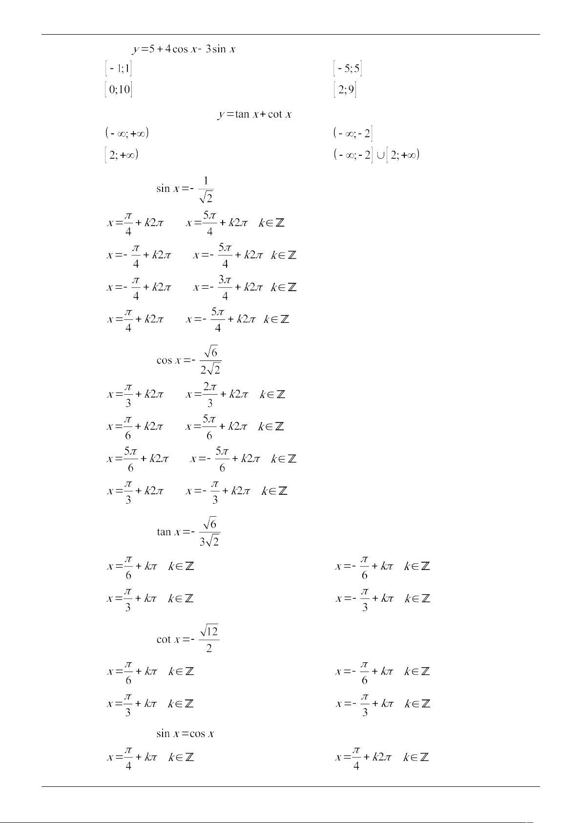 Câu 18. Phương trình chỉ có các nghiệm là A. và ( ). B. và ( ). C. và ( ). D. và ( ).