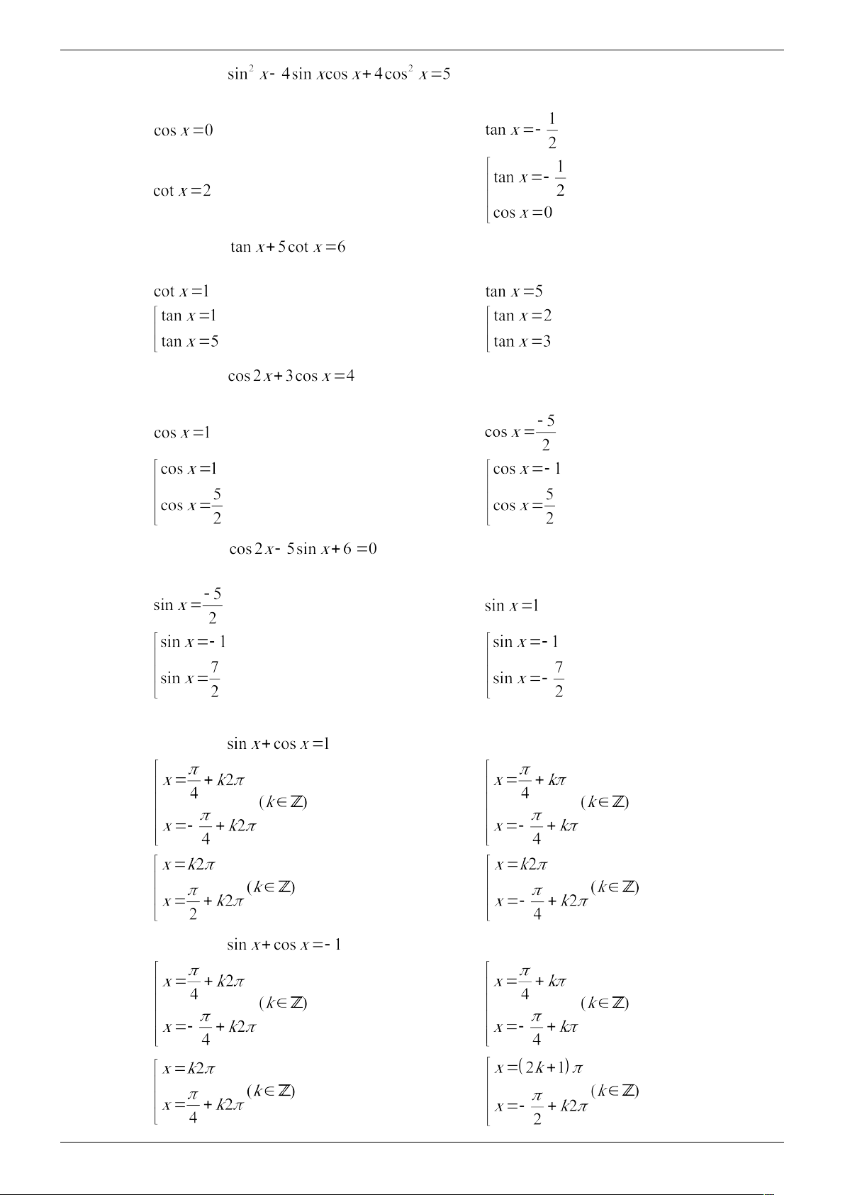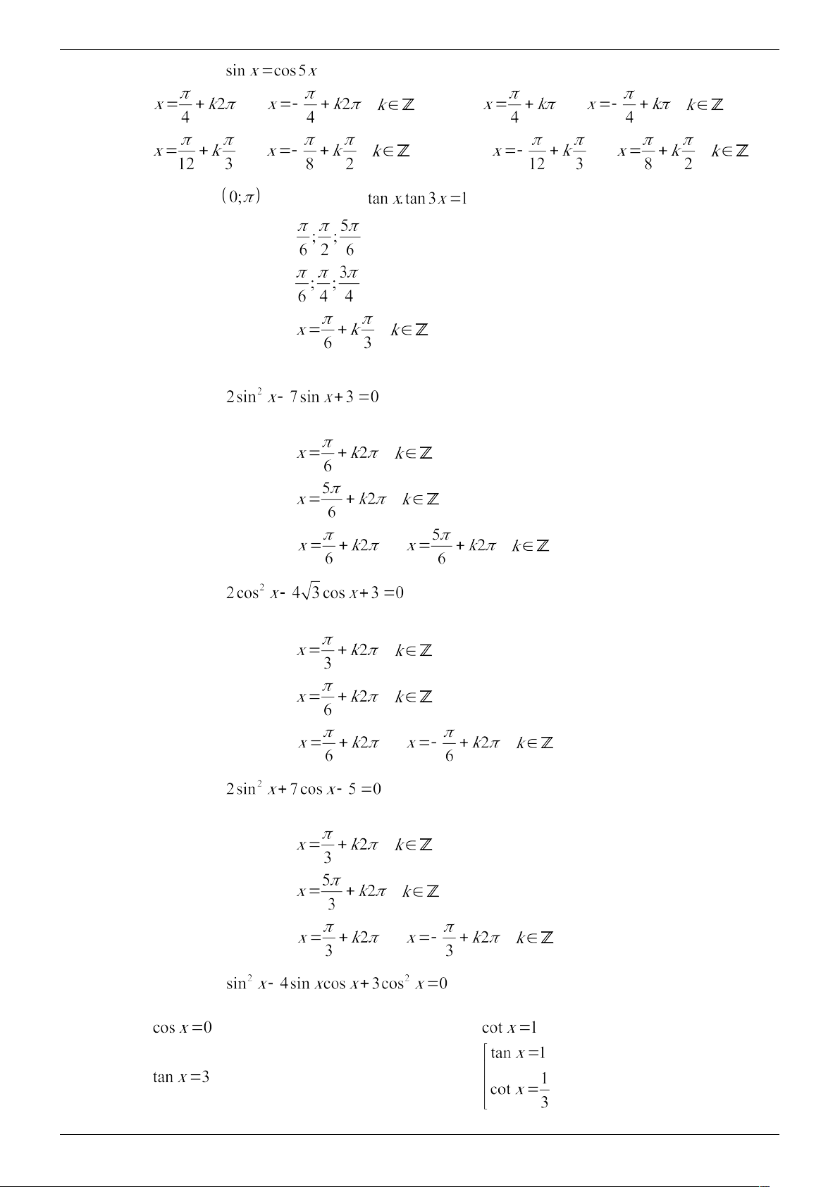 Câu 31. Phương trình chỉ có các nghiệm là A. và ( ). B. và ( ). C. và ( ). D. . và ( ).