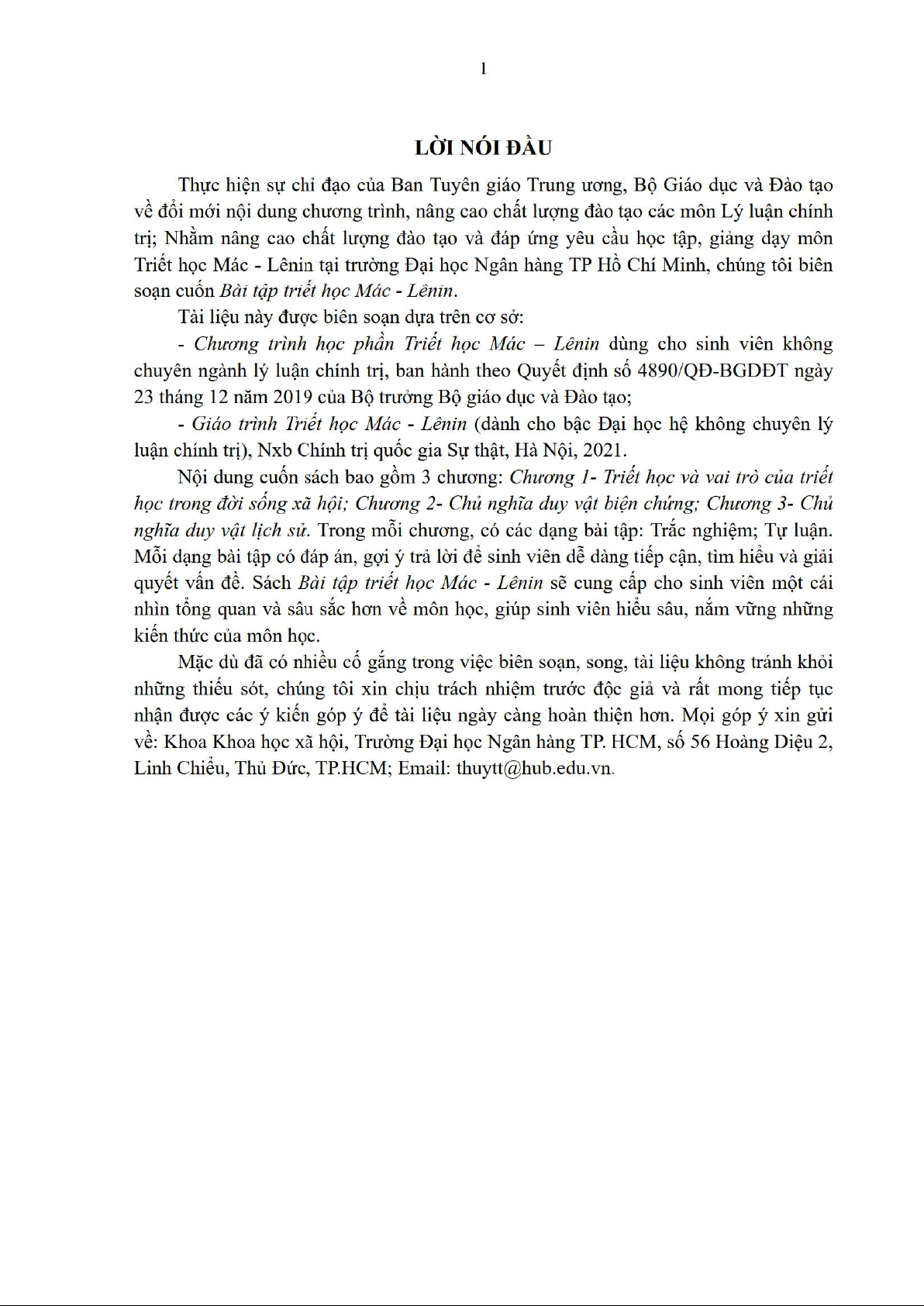 Bài tập triết học Mác Lênin | Trường Đại học Ngân hàng thành phố Hồ Chí Minh
