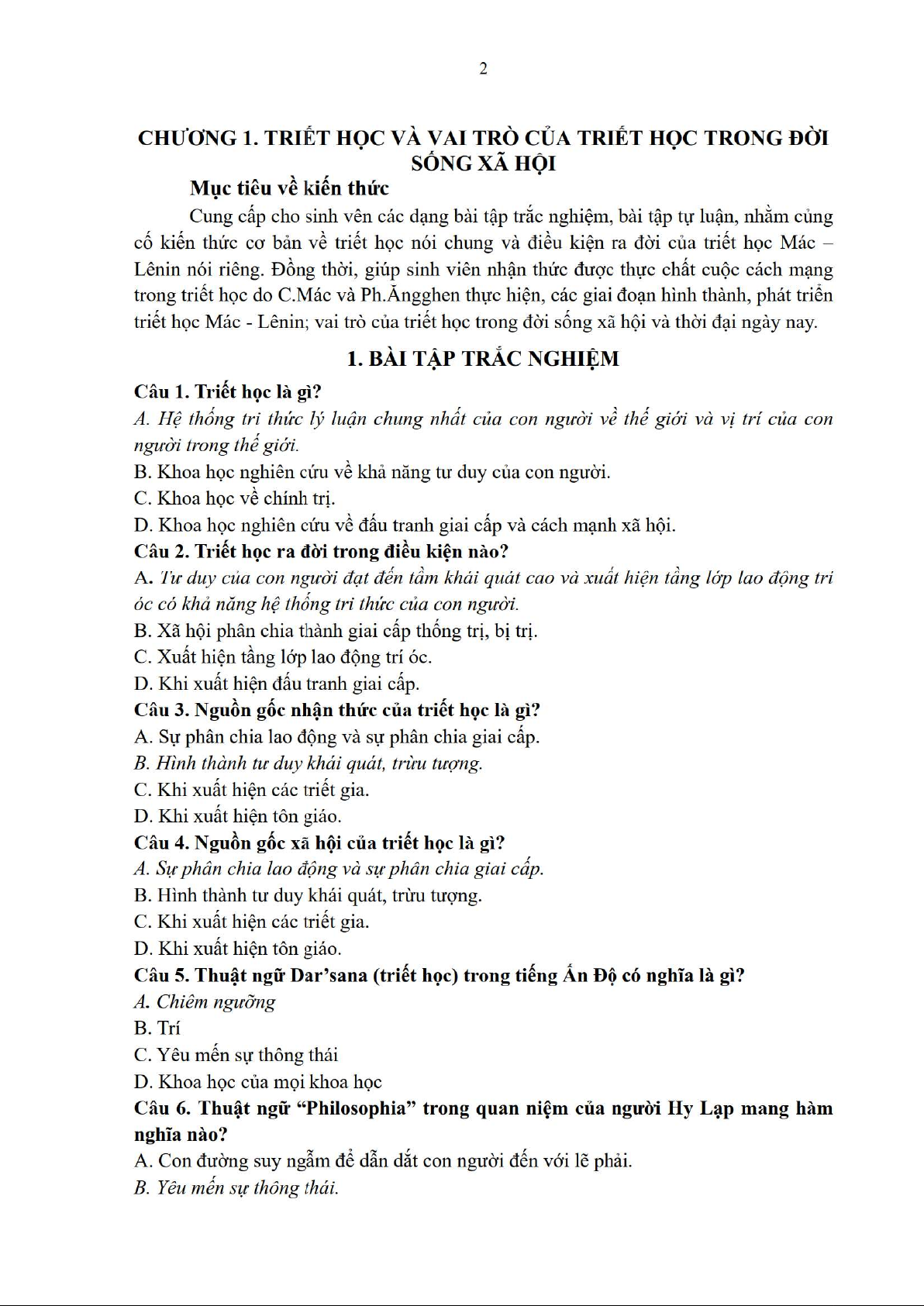 Tài liệu tham khảo cuối học phần môn Triết học Mac - Leenin | Đại học Hoa Sen