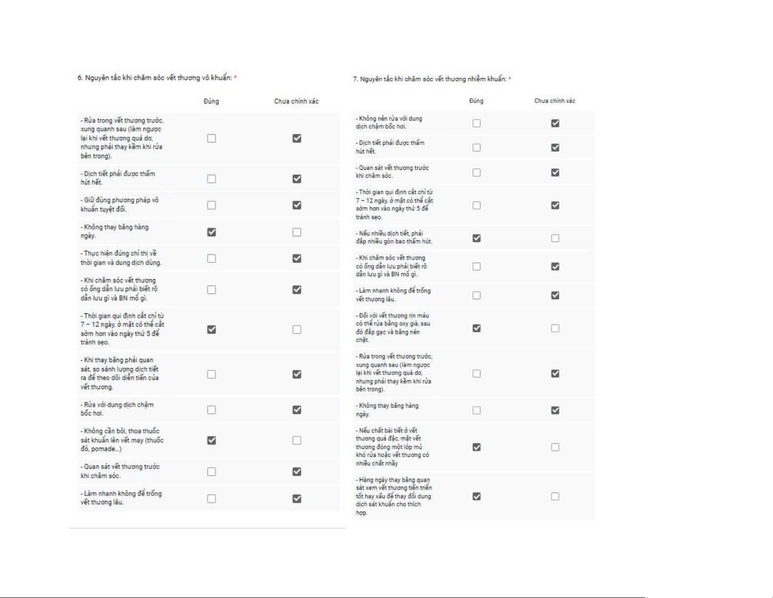 10. Khi thay băng vết thương nên rửa từ ngoài vào trong:* Đúng Sai Mã số SV*