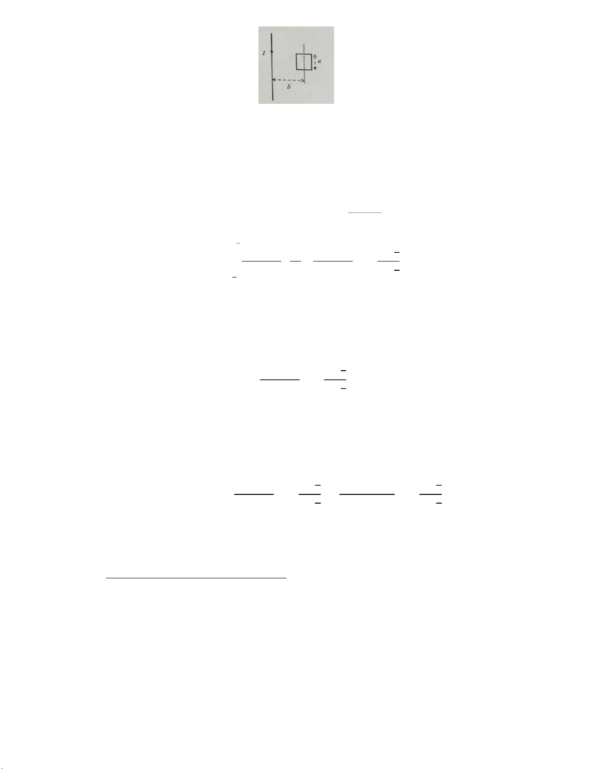 𝑑𝑖𝑒𝑛 𝑡𝑖𝑐ℎ 𝑘ℎ𝑢𝑛𝑔 𝑑𝑎𝑦 ; 𝐵 = 𝜇0∗ 𝐼2 𝛷 = ∫𝐵𝑑𝑆 2 ∗ 𝜋 ∗ 𝑥 𝑏+𝑎2 2 ∗ 𝜋 ∗ln (𝑏 + 𝑎 ⇒ 𝛷 = ∫𝜇0∗ 2 𝐼 = 2 𝜇∗ 0 𝑎 2 ∗ ∗ 𝐼2 𝜋 ∗ ∗ 𝑎 𝑑𝑥 2 𝑥 𝑏 − 𝑎2) 𝑏−𝑎