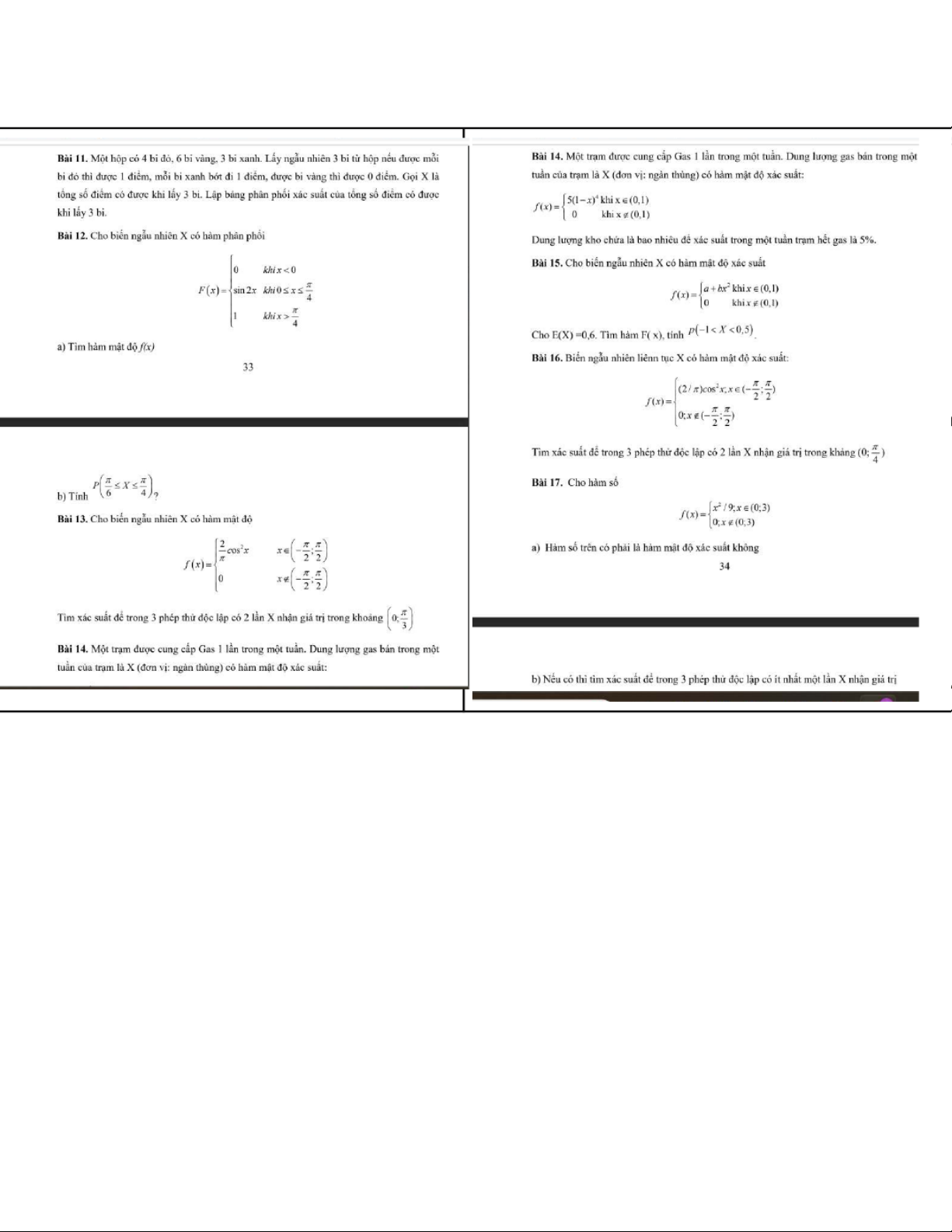 Bài tập tự luận môn Xác suất thống kê| Trường Đại học Ngoại Thương