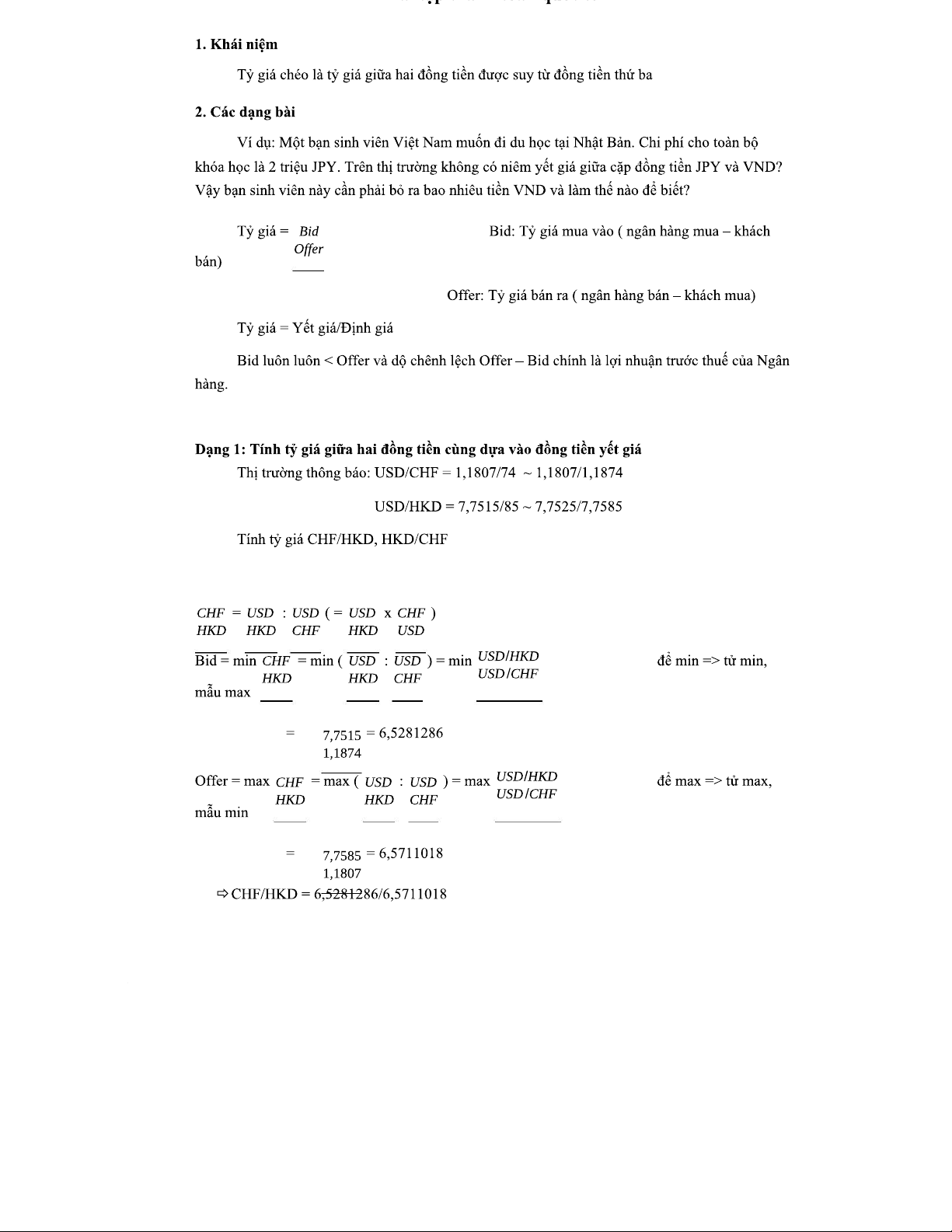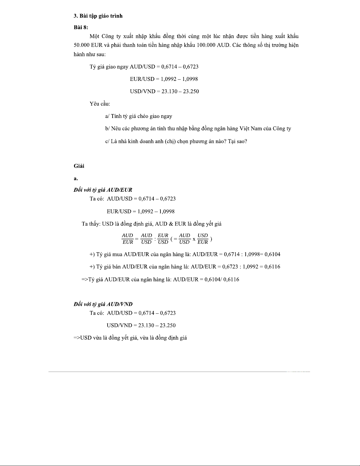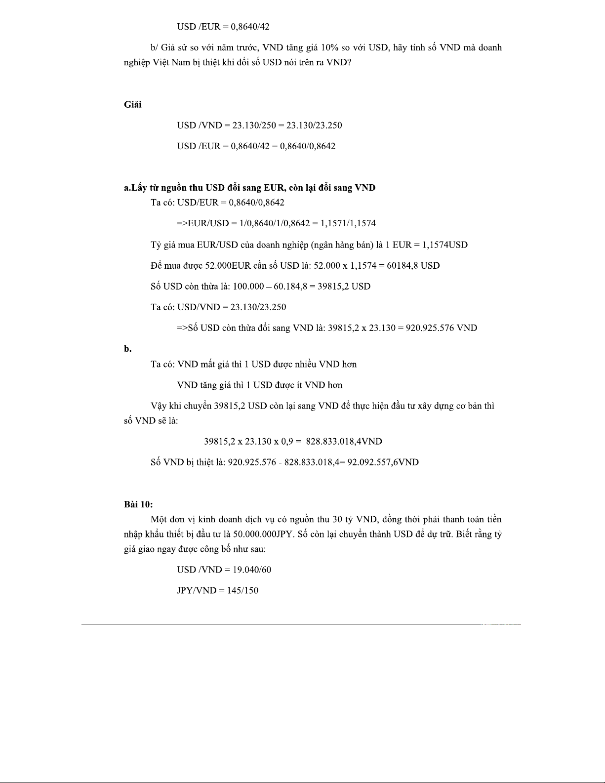 Bài tập tỷ giá - BT TTQT: Tính toán và Phân tích Tỷ giá Quốc tế