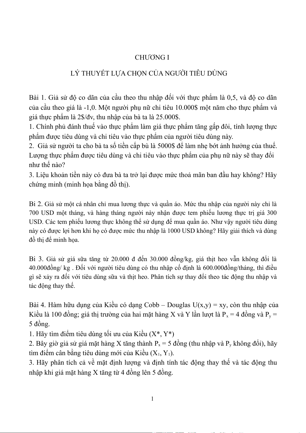 Bi 2. Giả sử một cá nhân chỉ mua lương thực và quần áo. Mức thu nhập của người này chỉ là
