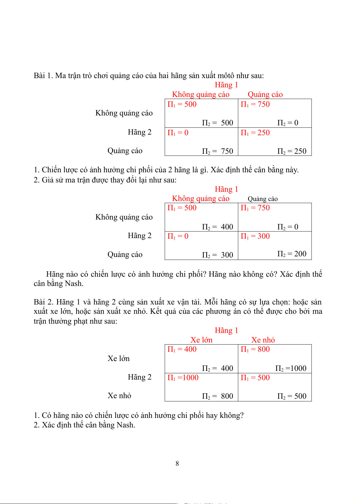 lập với nhau. Tính lợi nhuận mỗi hãng thu được.