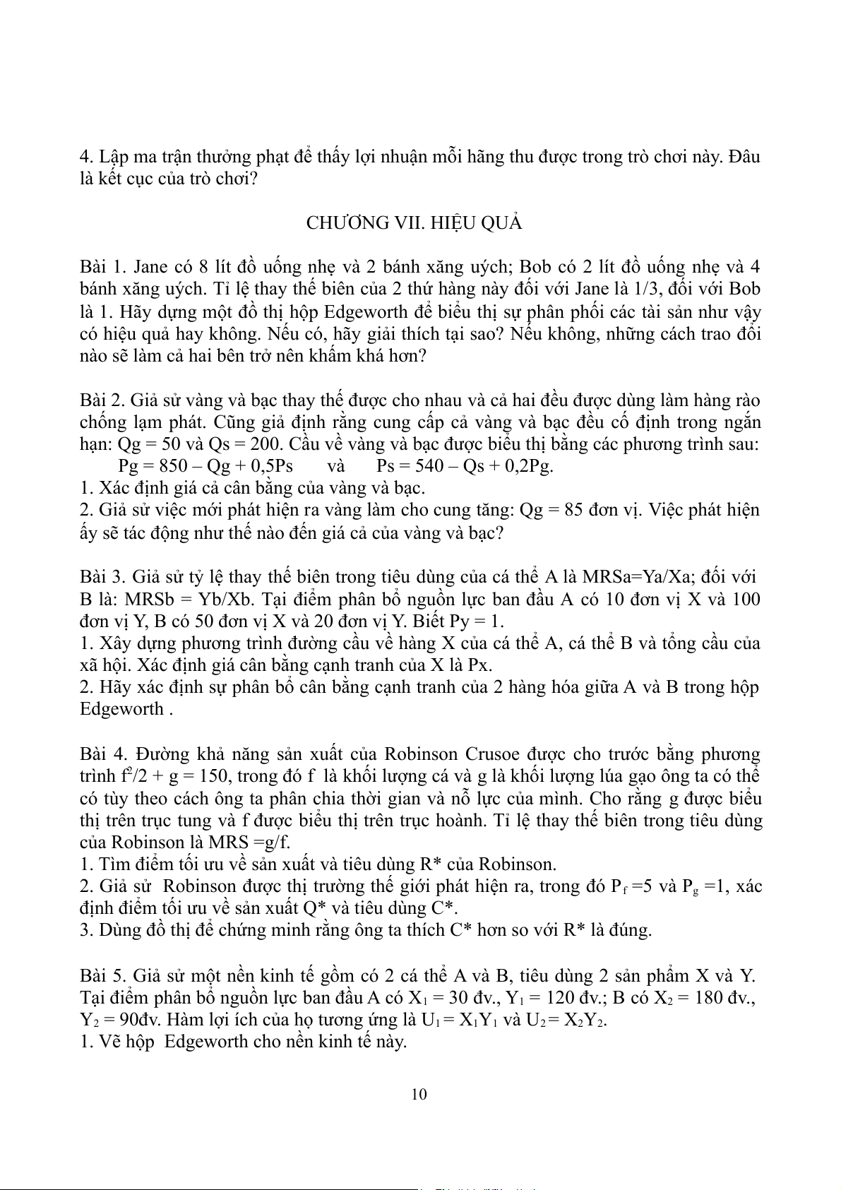 Bài 6. Nhu cầu về hàng hóa công cộng của Robinson là MU1 = 80 – 2Q = P1 và của Thứ