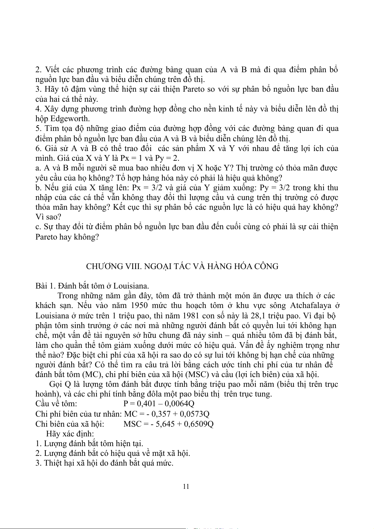Hãy tìm sự phân bổ có hiệu quả Pareto khoản tiền này giữa các hàng hóa cá nhân và ‘‘hàng hóa công’’. 14