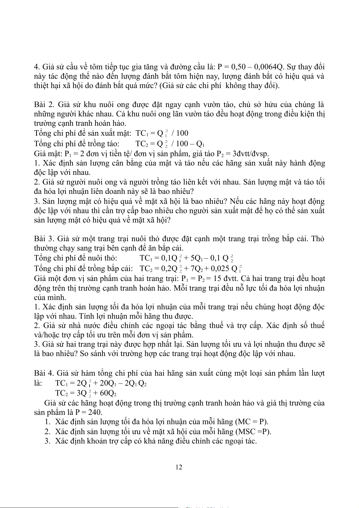 Bài 4. Giả sử hàm tổng chi phí của hai hãng sản xuất cùng một loại sản phẩm lần lượt là: TC1 = 2Q + 20Q1 – 2Q1 Q2 TC2 = 3Q + 60Q2