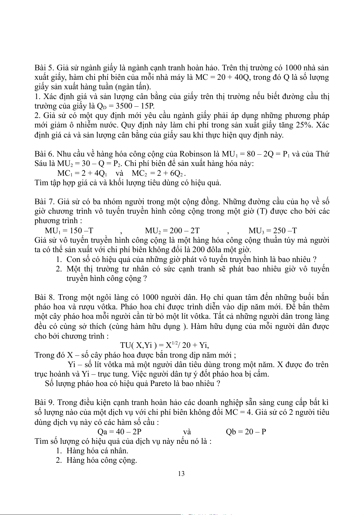 Tìm số lượng có hiệu quả của dịch vụ này nếu nó là : 1. Hàng hóa cá nhân. 2. Hàng hóa công cộng. 13