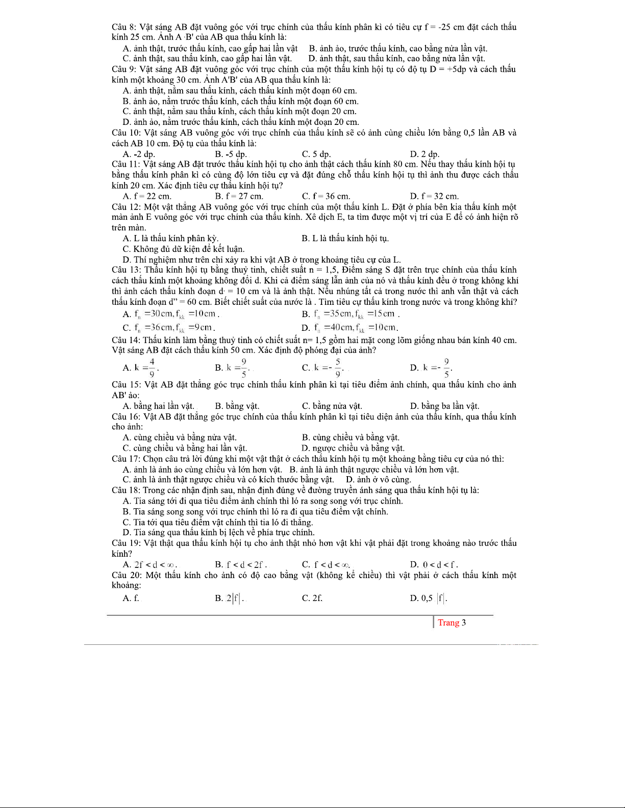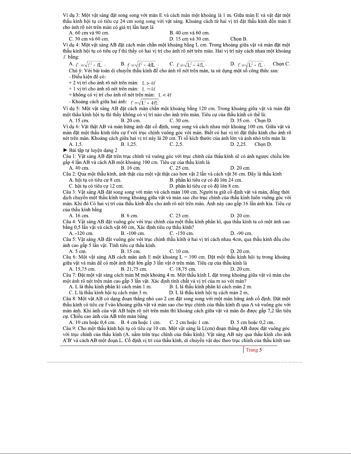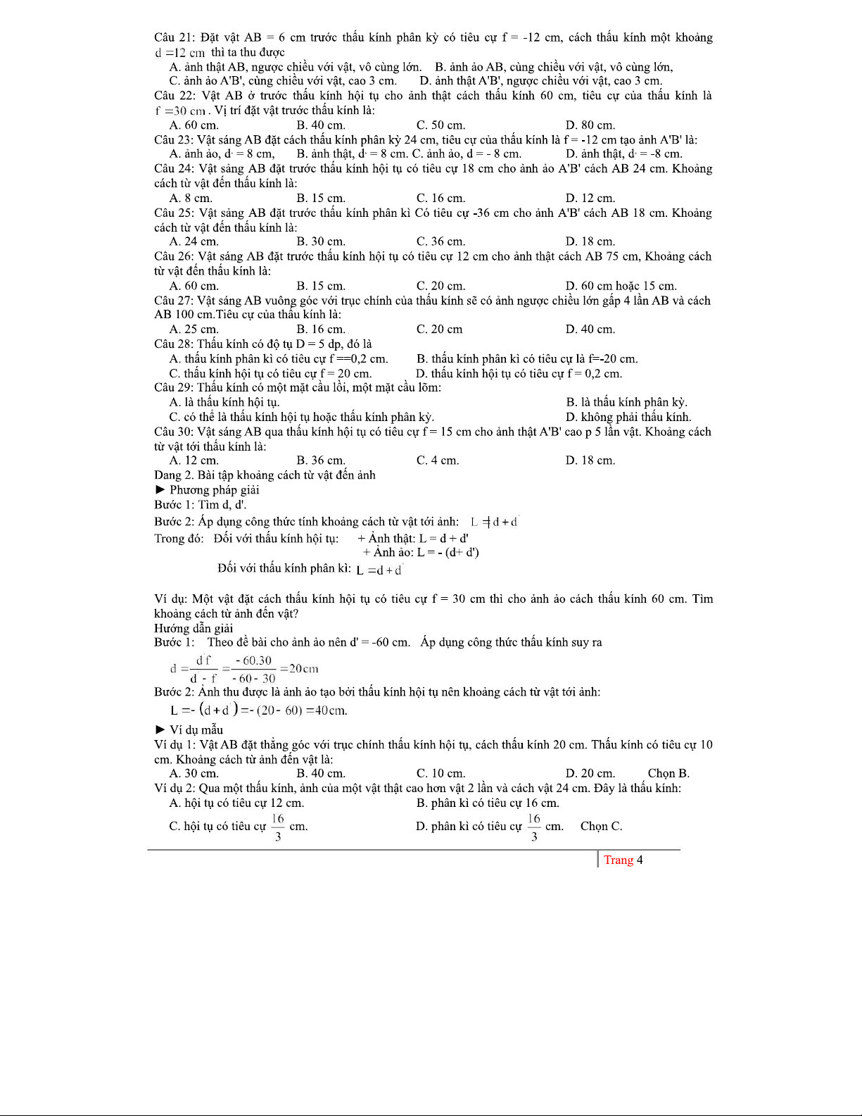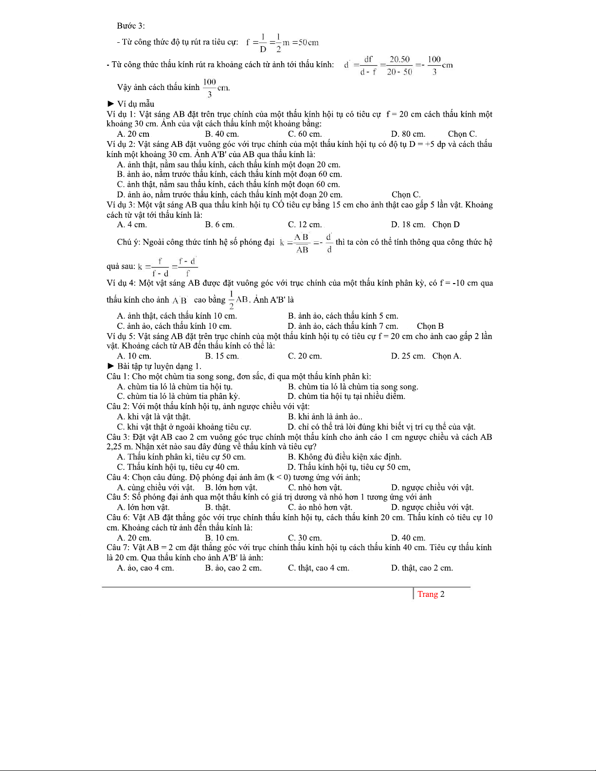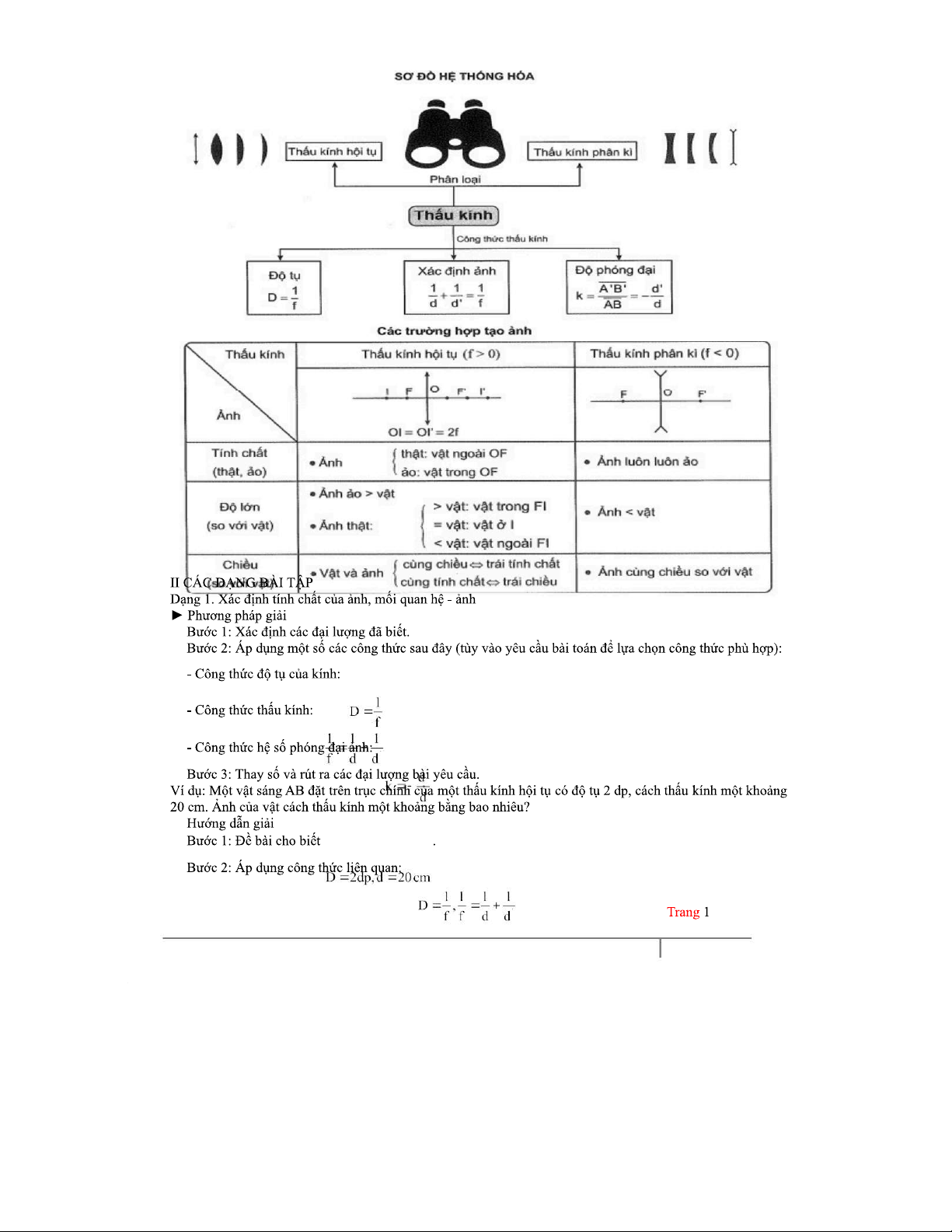 BÀI TẬP VÀ CÔNG THỨC VỀ THẤU KÍNH (MÔN VẬT LÝ)