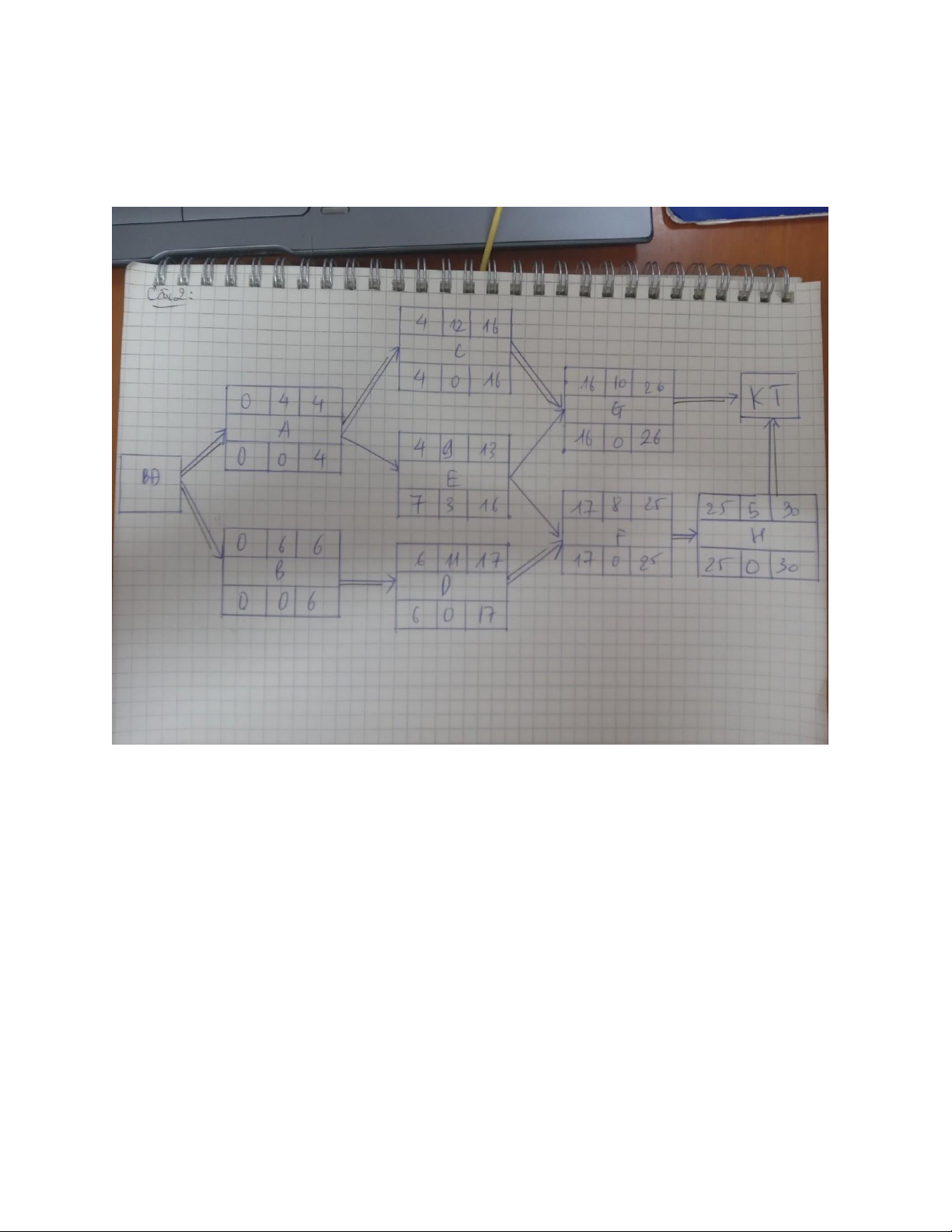 1. Vẽ sơ đồ PERT và xác định đường găng?