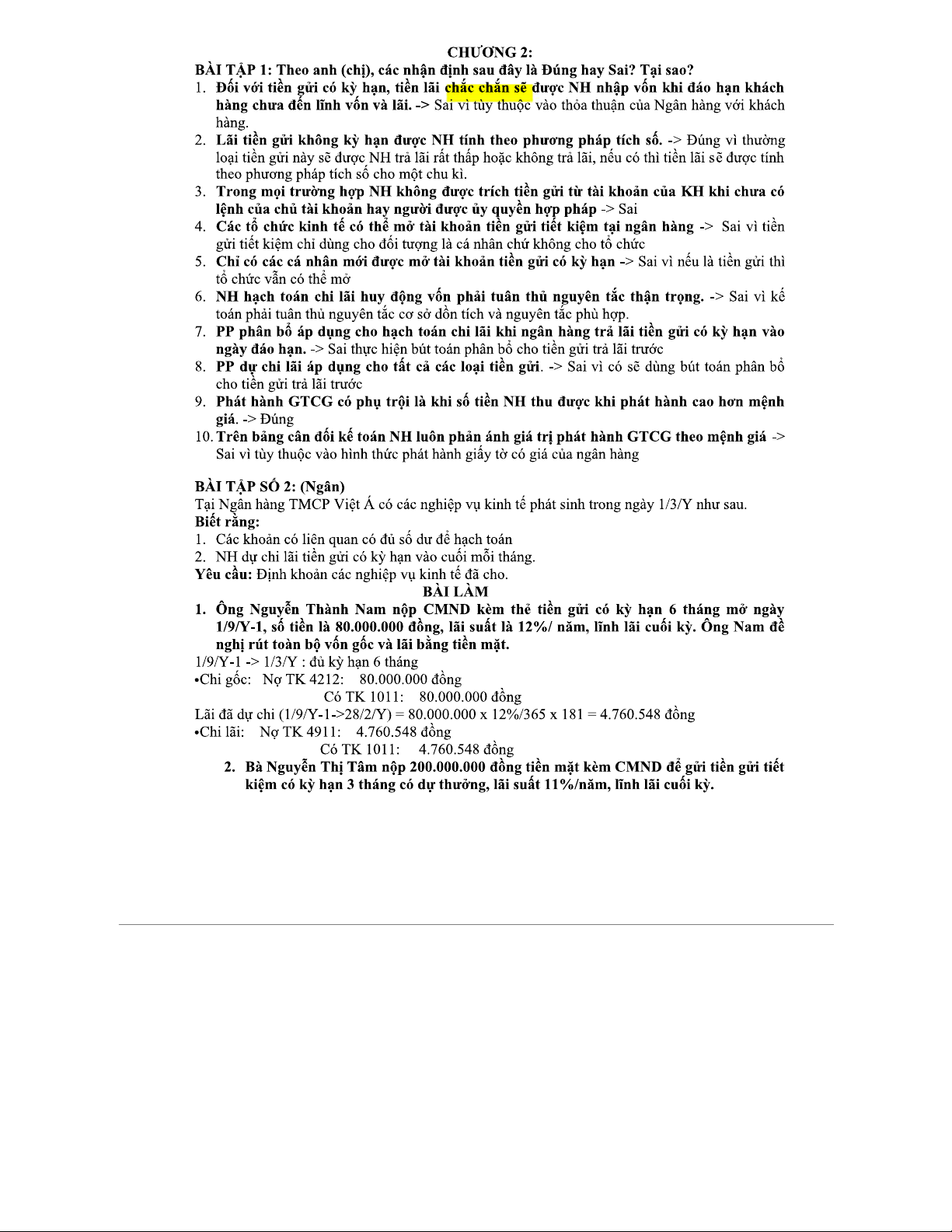 Trắc Nghiệm Kế Toán Ngân Hàng (CĐKD01) - Chương 1 & 4