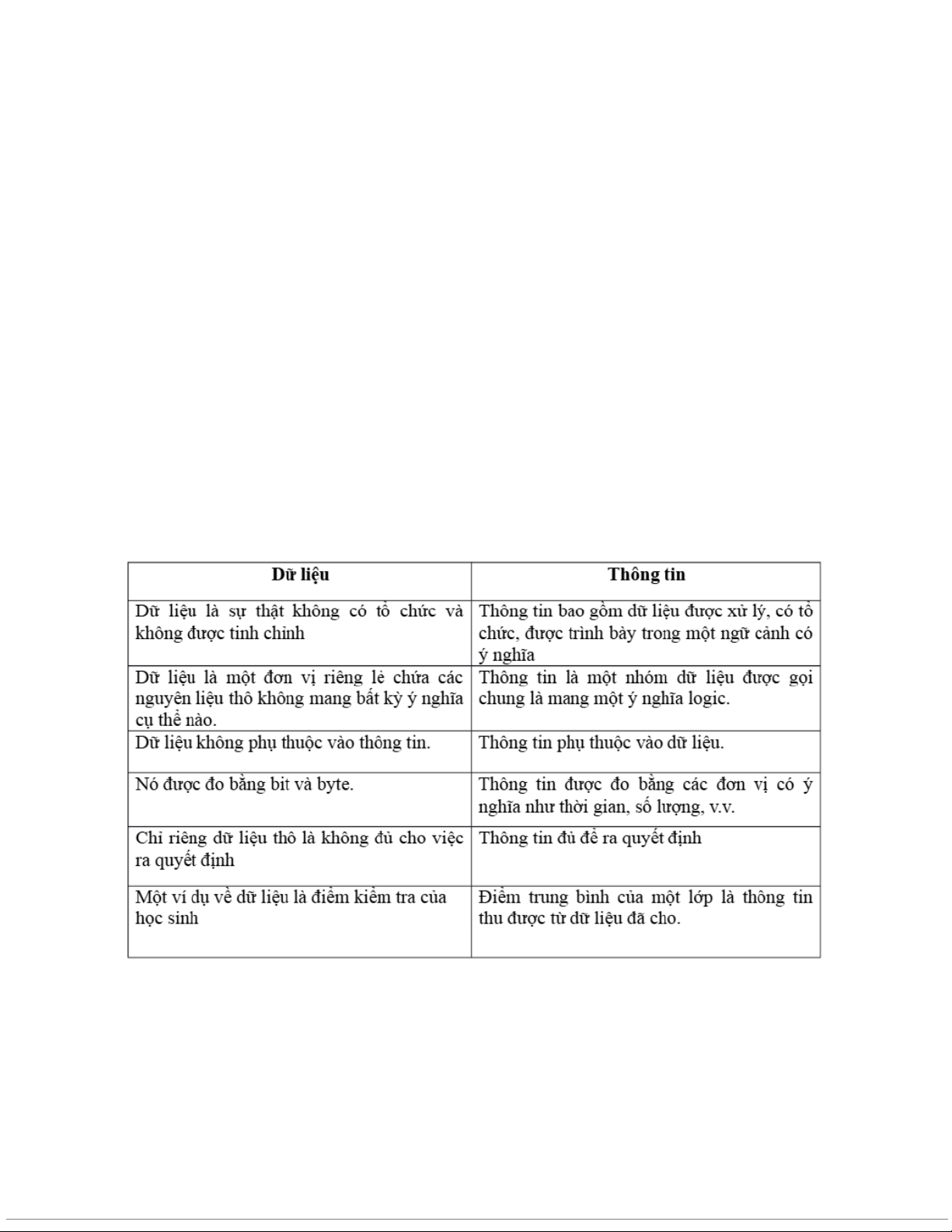 Thông tin là một khái niệm rộng lớn hơn nó bao gồm nhiều giá trị của dữ liệu -