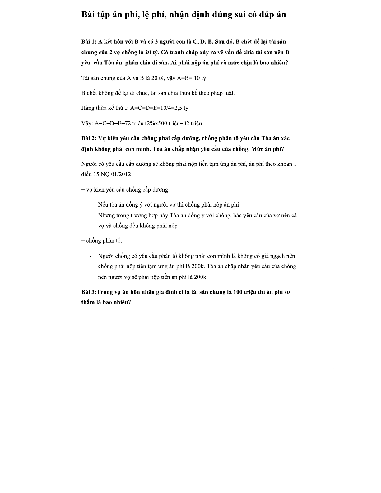 Bài Tập Và Nhận Định Về Án Phí Trong Tố Tụng Dân Sự (TTDS)