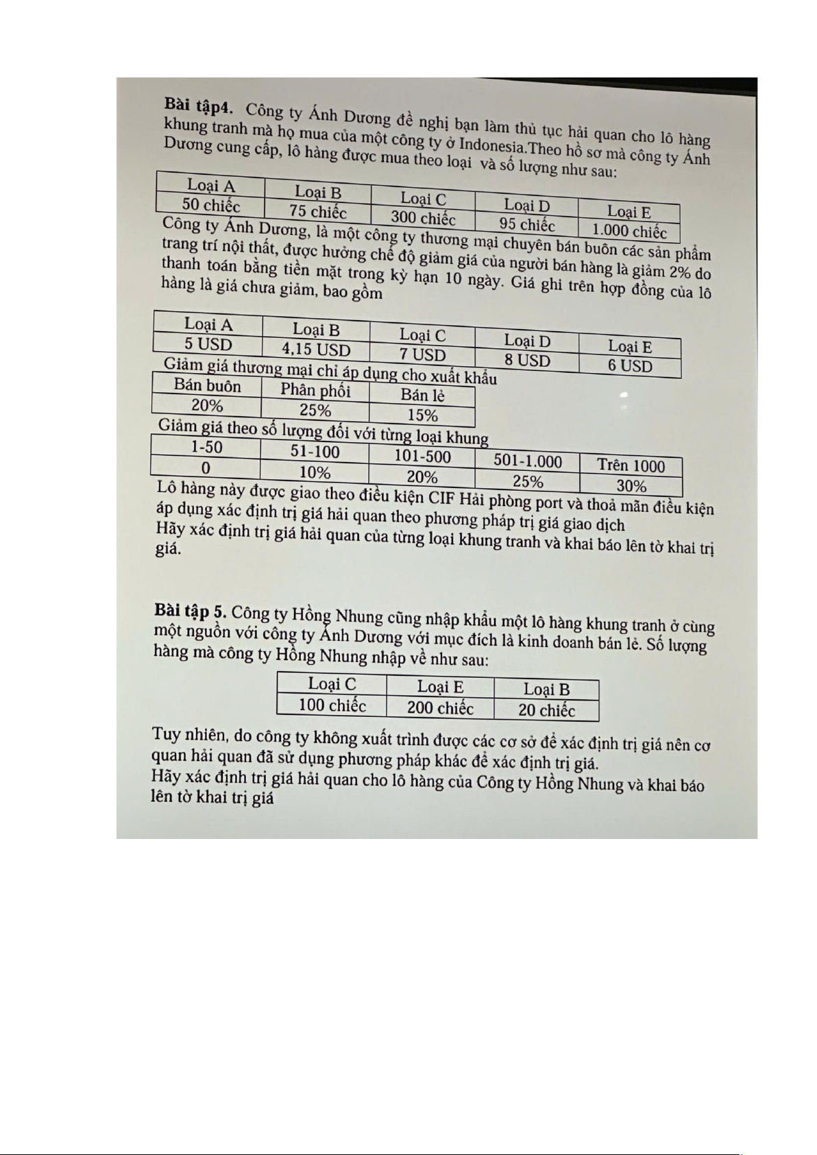 o Tổng trị giá: 6,15 USD×100=615 USD 2. Loại E: