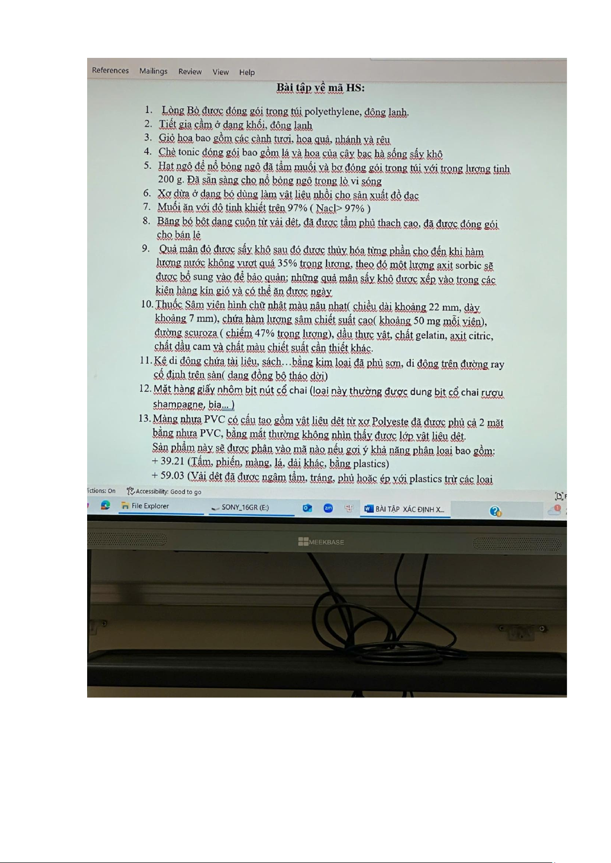 thiết bị toàn bộ sẽ đc phân mã hs riêng lOMoAR cPSD| 58137911 lOMoAR cPSD| 58137911 1. 0504.00.00 2. 0511.99.90 3. 0604.91.00 4. 1211.90.99 5. 2005.00.00 6. 5305.00.00 7. 2501.00.10 8. 3005.10.00 9. 8013.20.00 10. 2106.90.99 11. 12. 8309. 13. 14. 1901 15. 16. thuế của