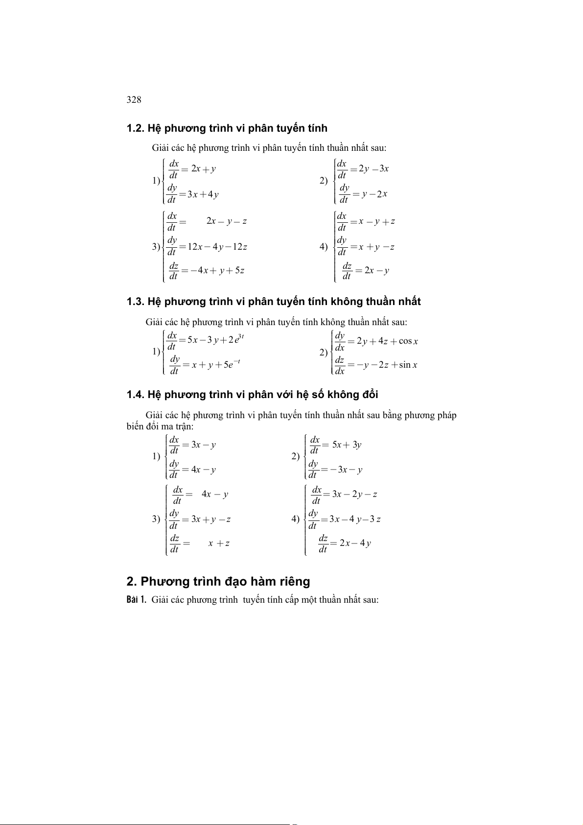 1.4. Hệ phương trình vi phân với hệ số không đổi.................................................................. 328 2. 2 .P h P ươ ư ng n g t r t ì r n ì h n h đạ đ o o h à h m à m r i r ê i n ê g n