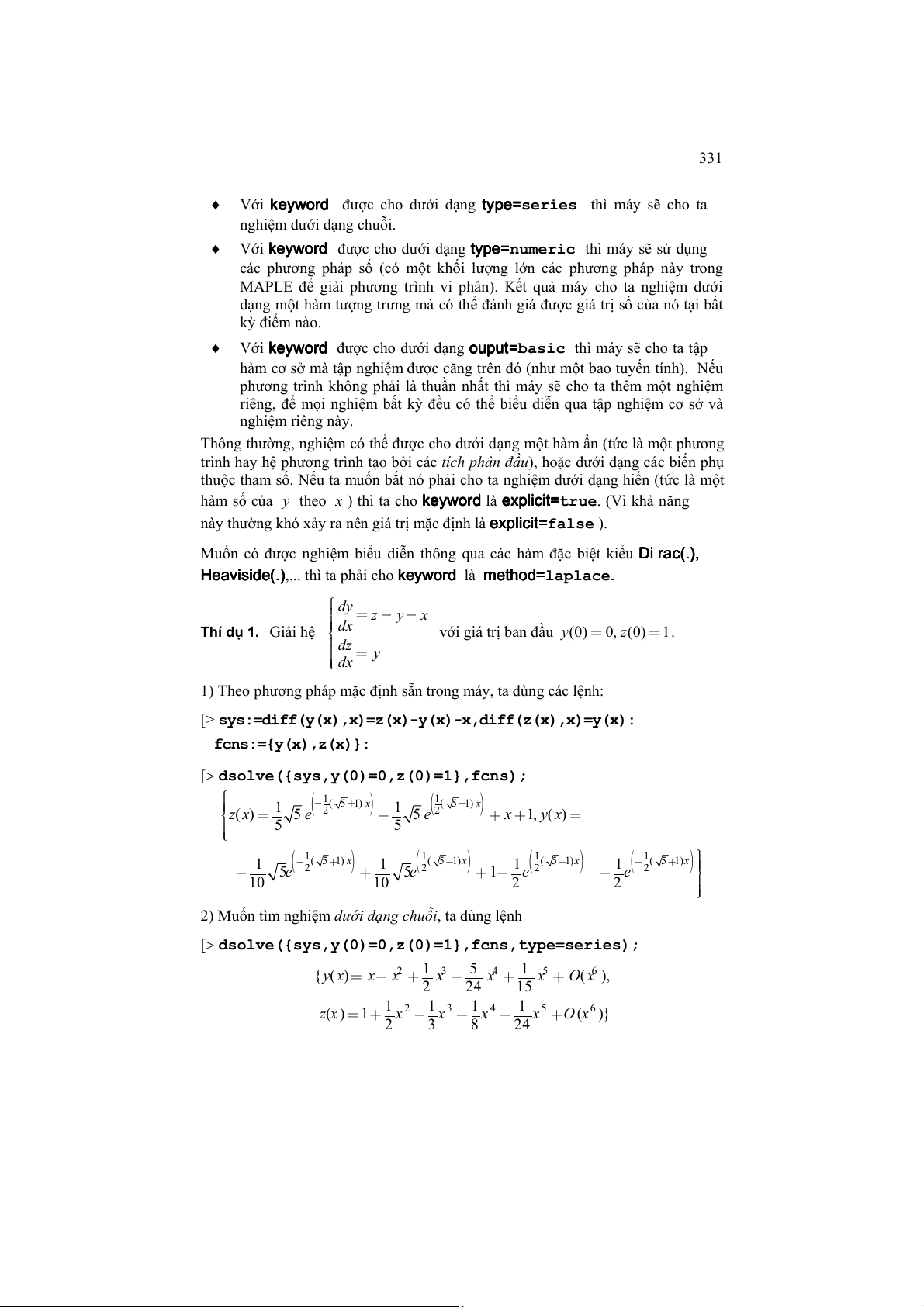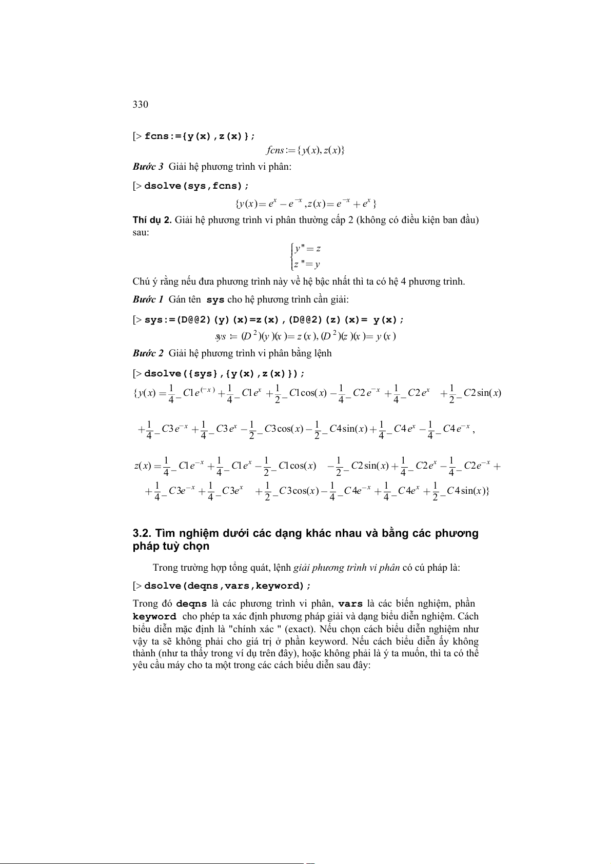 3.2. Tìm nghiệm dưới các dạng khác nhau và bằng các phương pháp tuỳ chọn..................... 330