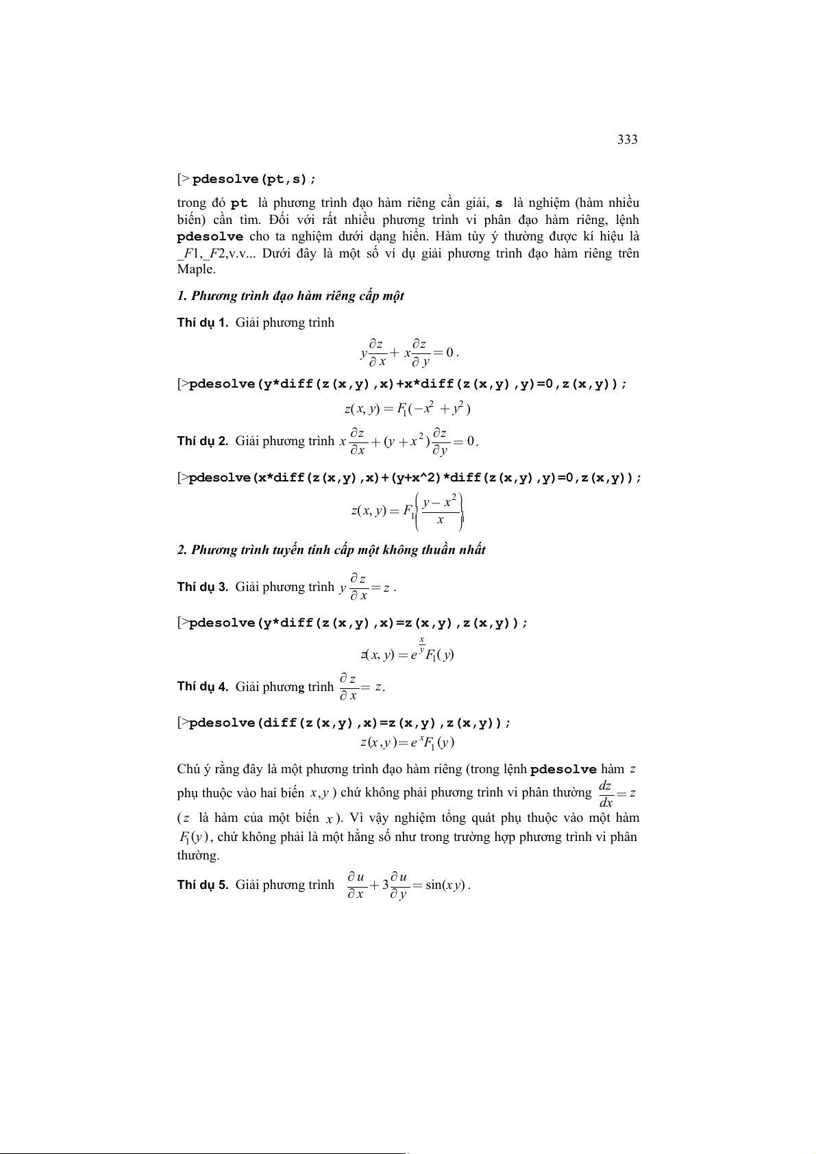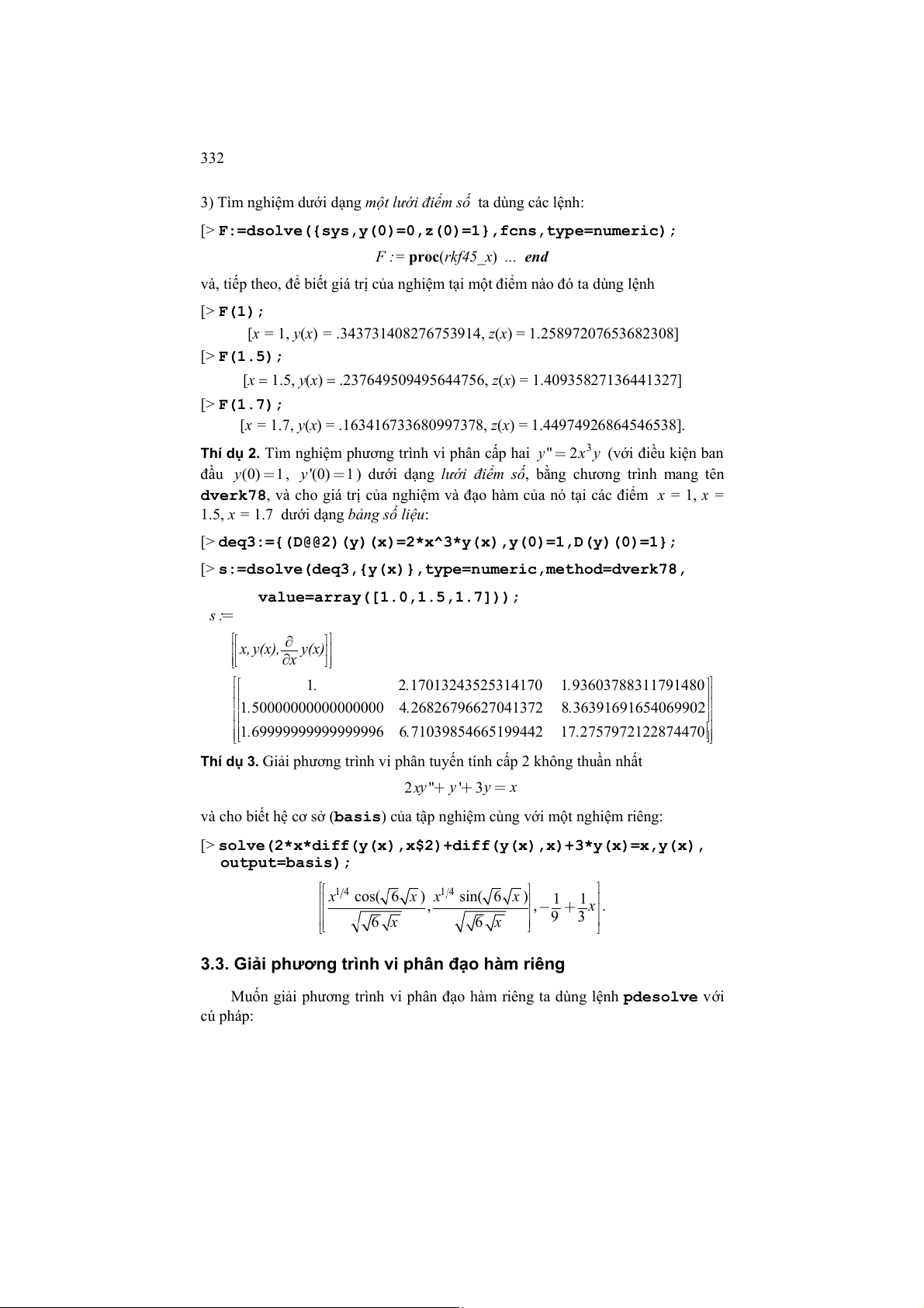 3.3. Giải phương trình vi phân đạo hàm riêng ........................................................................ 332