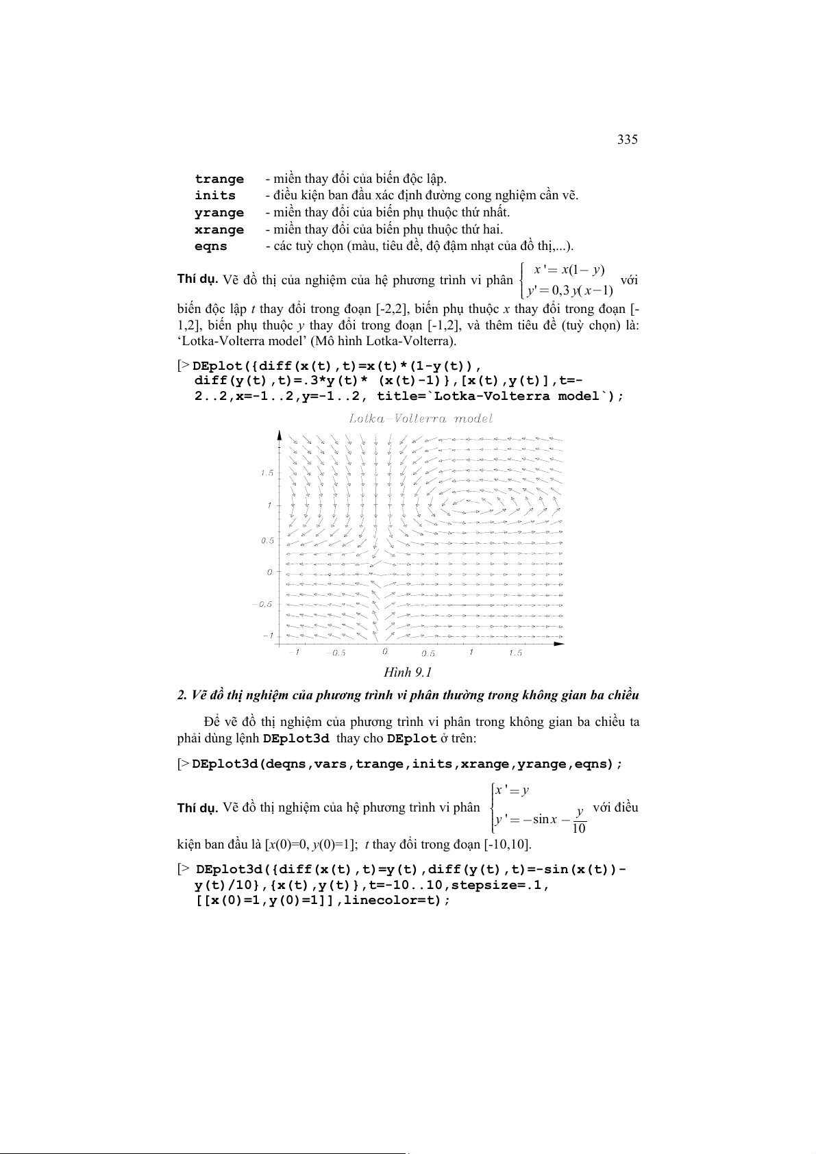 2..2,x=-1..2,y=-1..2, title=`Lotka-Volterra model`); Hình 9.1