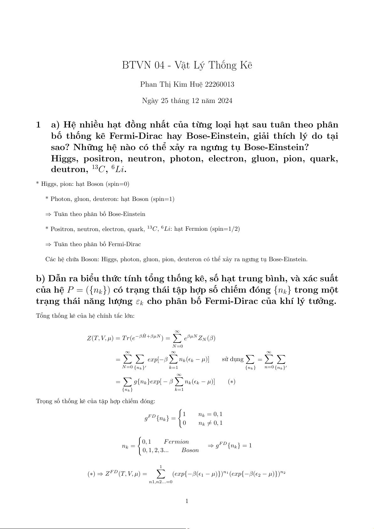 BTVN 04 - Vật Lý Thống Kê Phan Thị Kim Huệ 22260013 Ngày 25 tháng 12 năm 2024