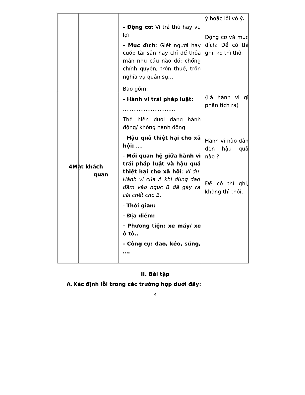 BÀI TẬP VỀ CÁC DẠNG VI PHẠM PHÁP LUẬT - CÁC DẠNG LÀM BÀI TẬP