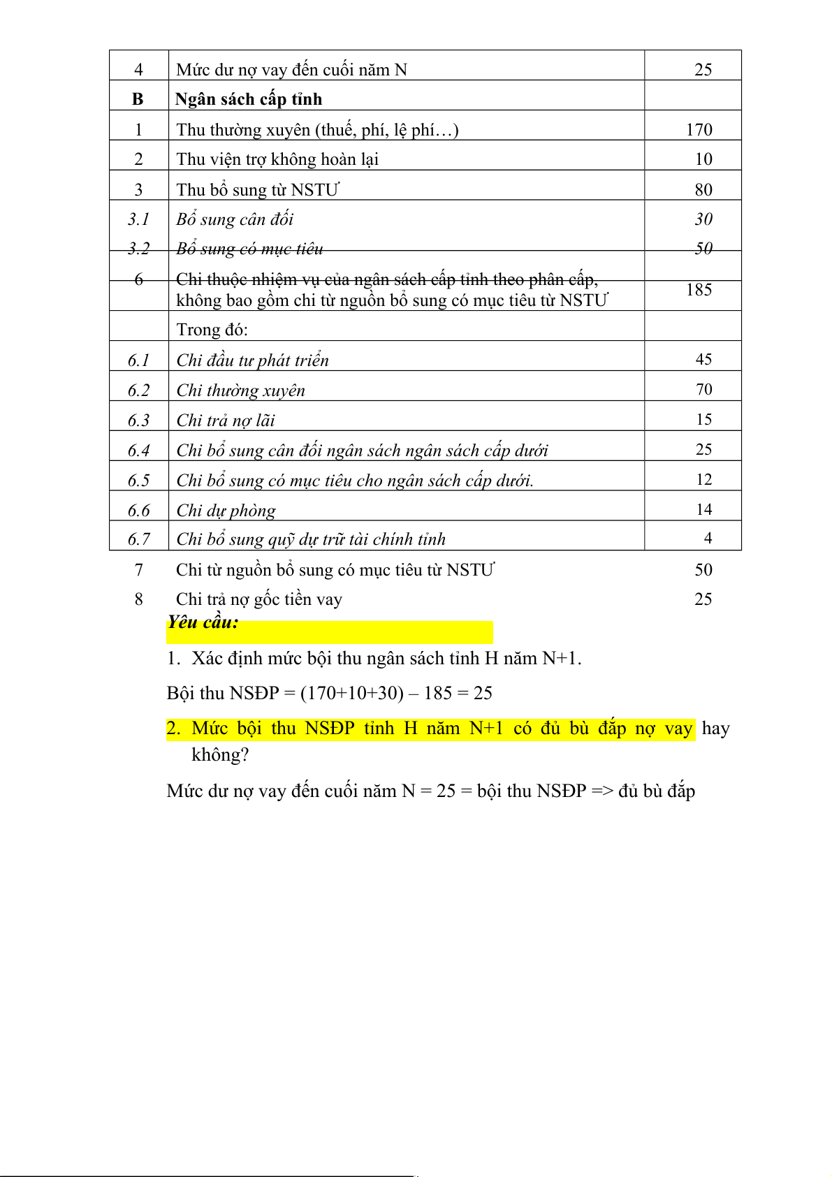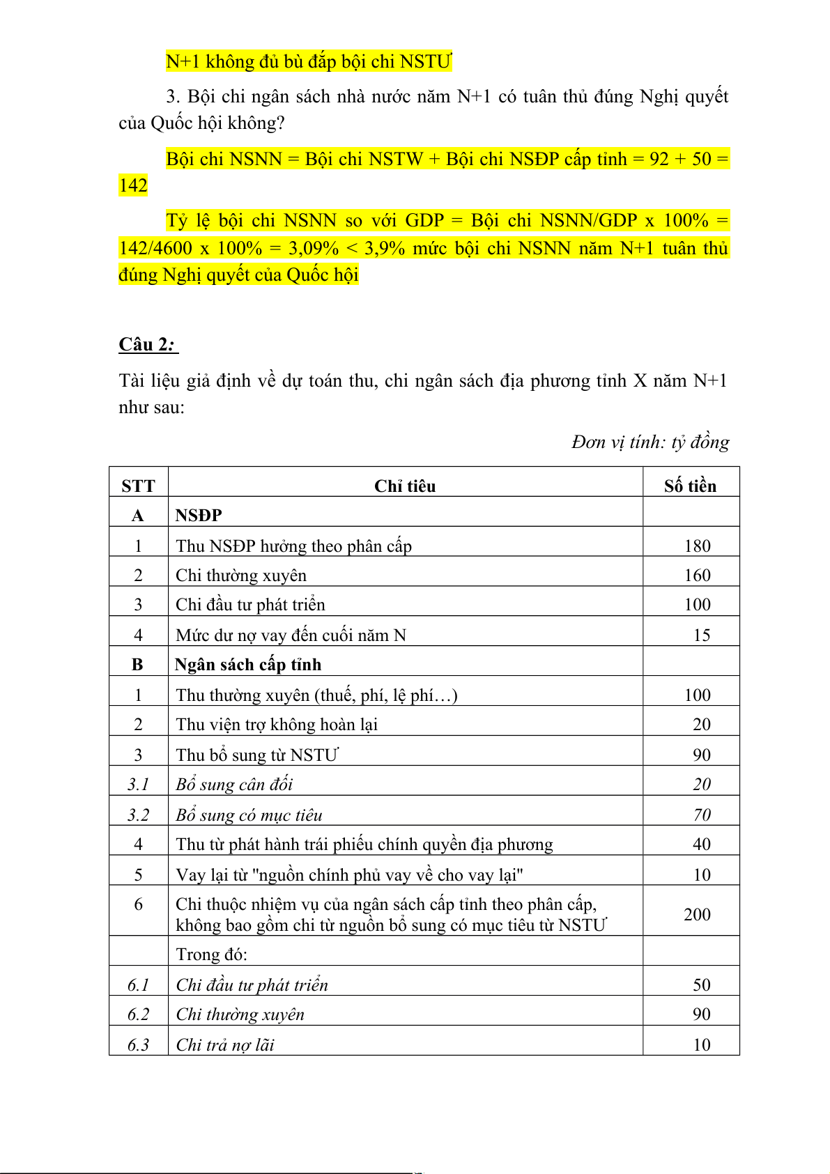 lại – Các khoản trả nợ gốc = 40 + 10 - 20 = 30 -> không đủ bù đắp bội chi Câu 3