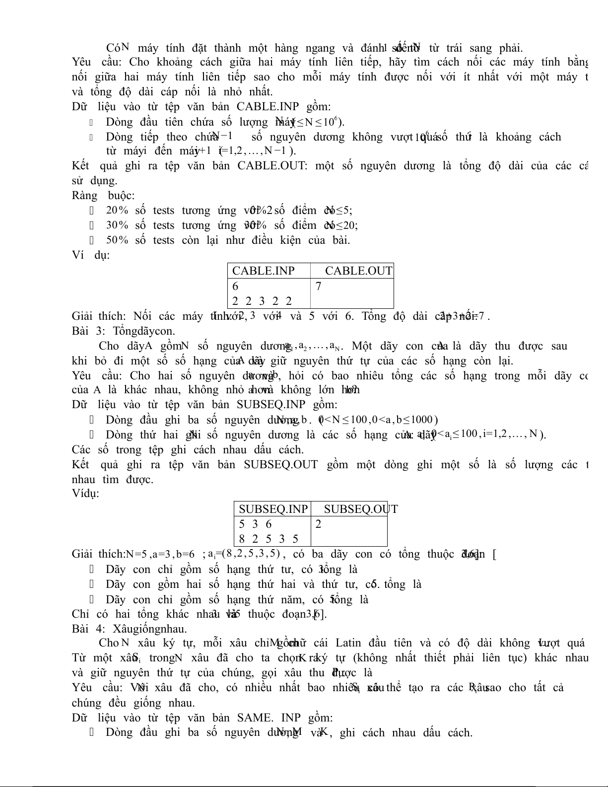 50 % số tests còn lại như điều kiện của bài. Ví dụ: CABLE.INP CABLE.OUT 6 7 2 2 3 2 2