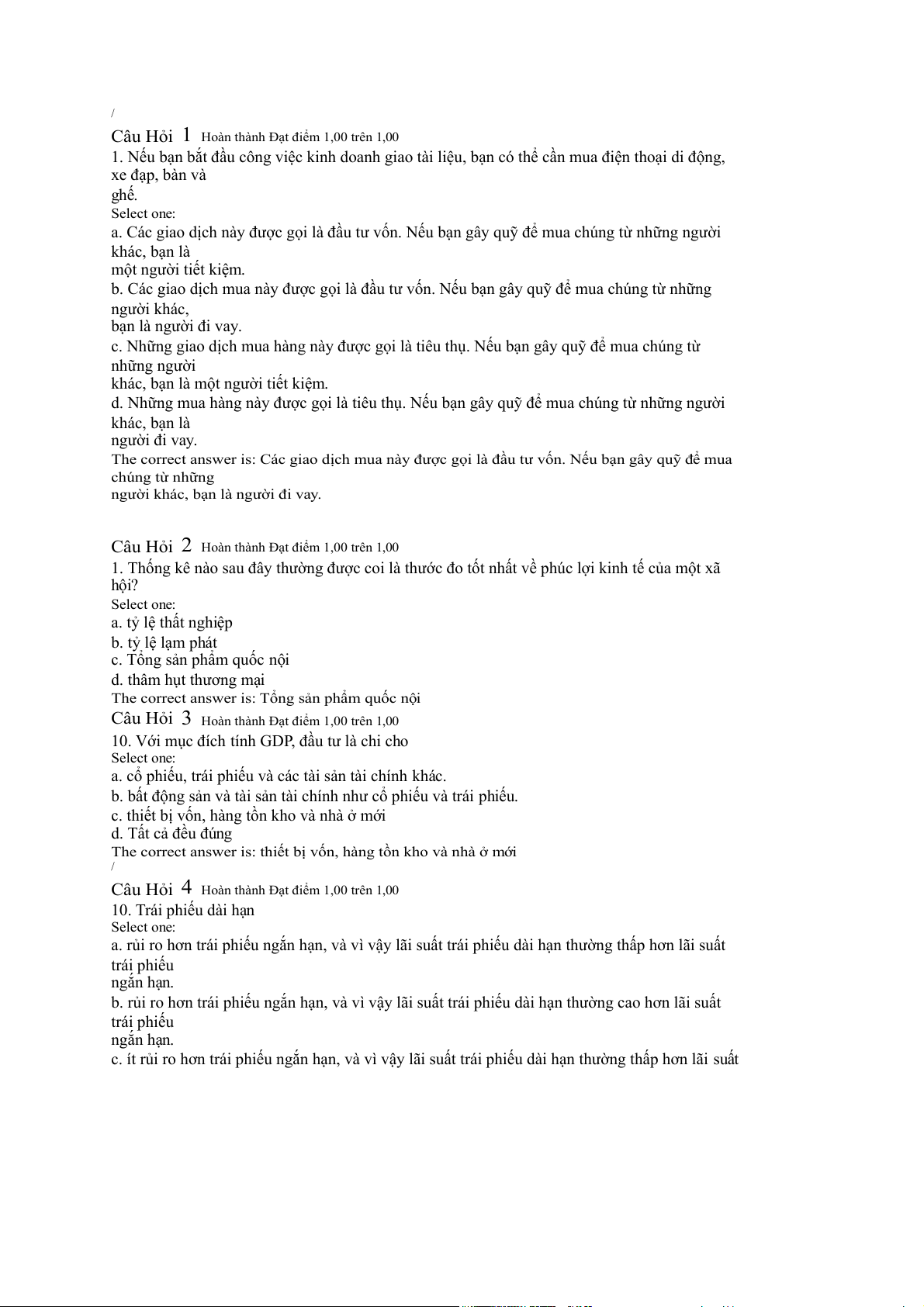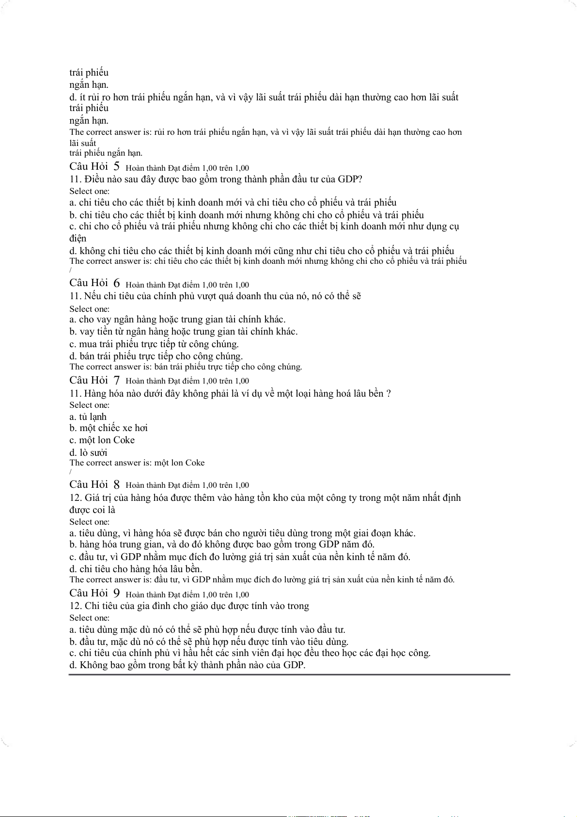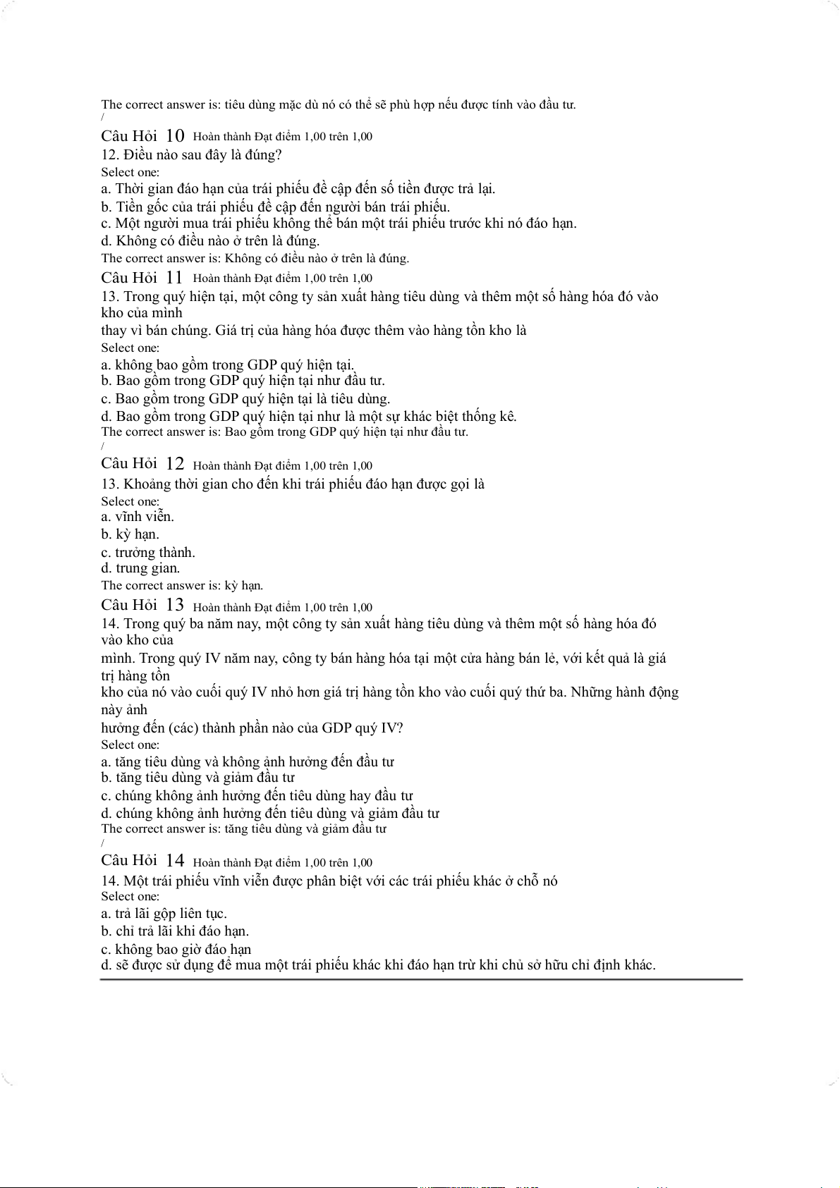 Câu Hỏi 4 Hoàn thành Đạt điểm 1,00 trên 1,00 10. Trái phiếu dài hạn Select one: