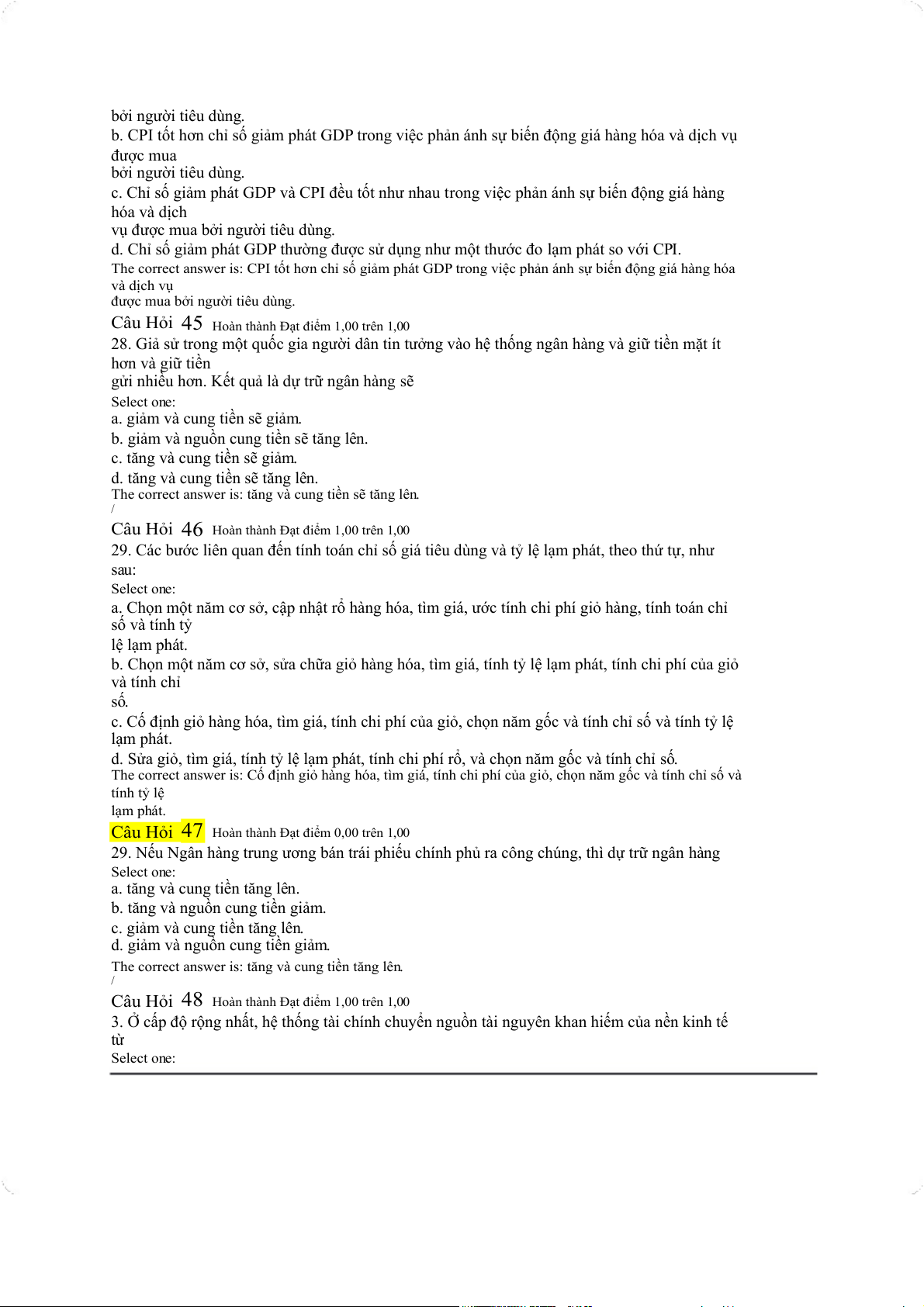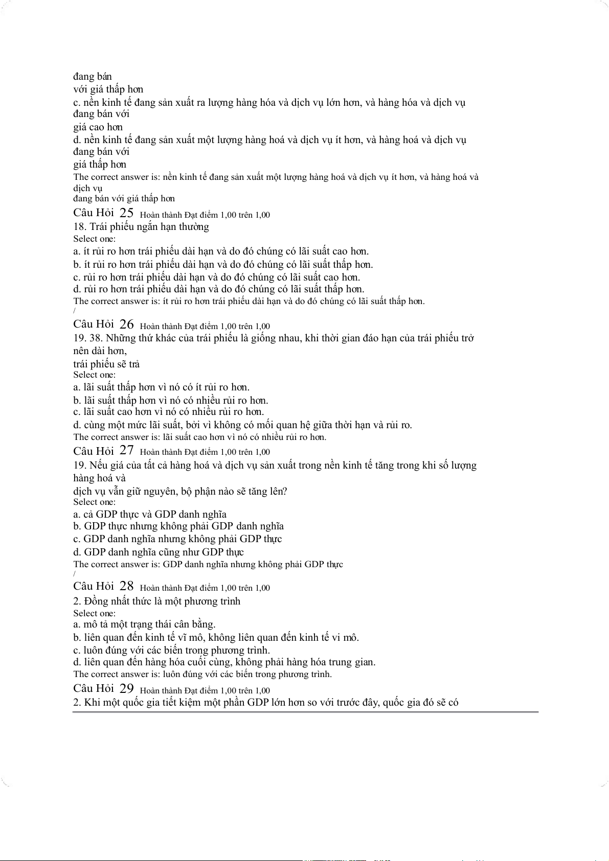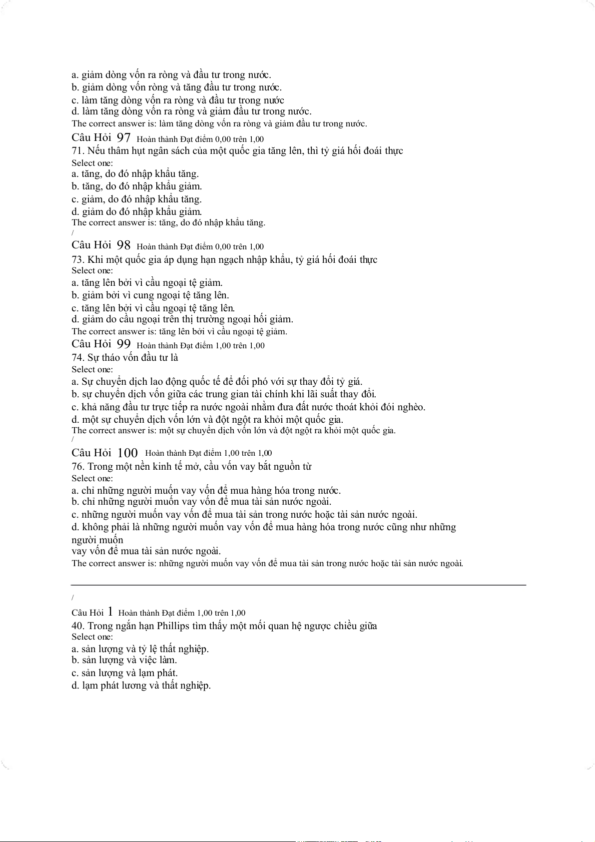đều giảm. Câu Hỏi 91 Hoàn thành Đạt điểm 1,00 trên 1,00