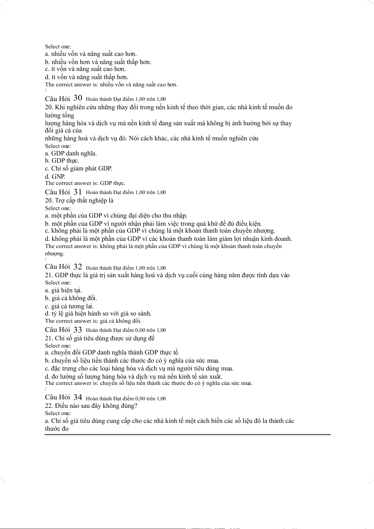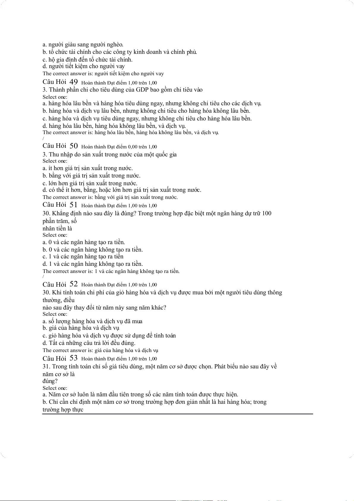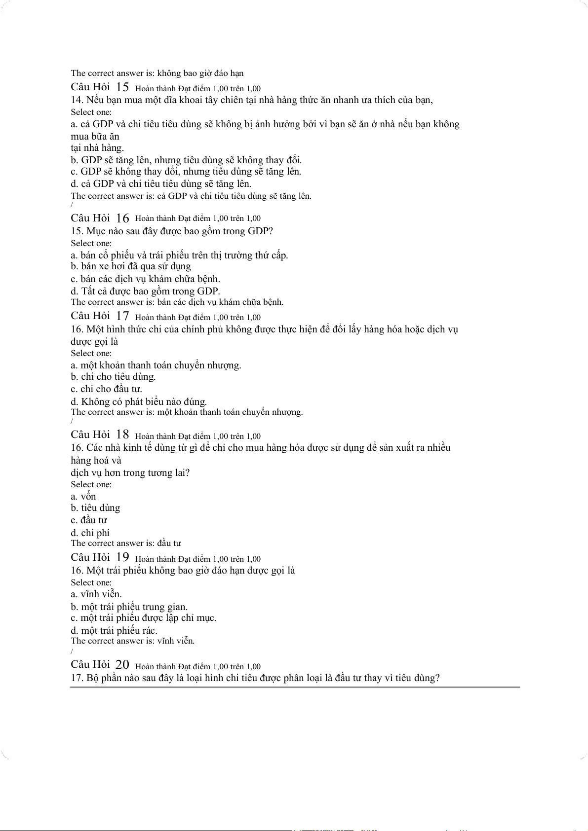đều giảm. Câu Hỏi 91 Hoàn thành Đạt điểm 1,00 trên 1,00