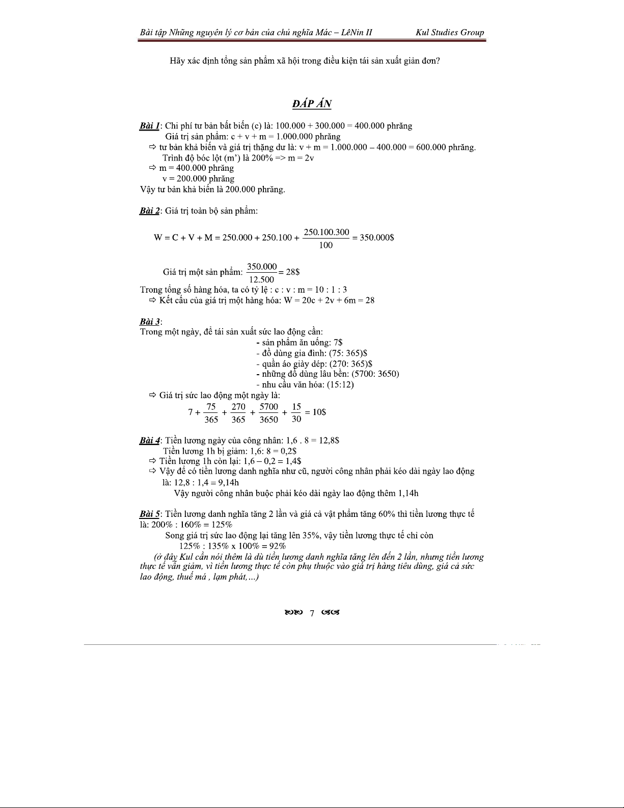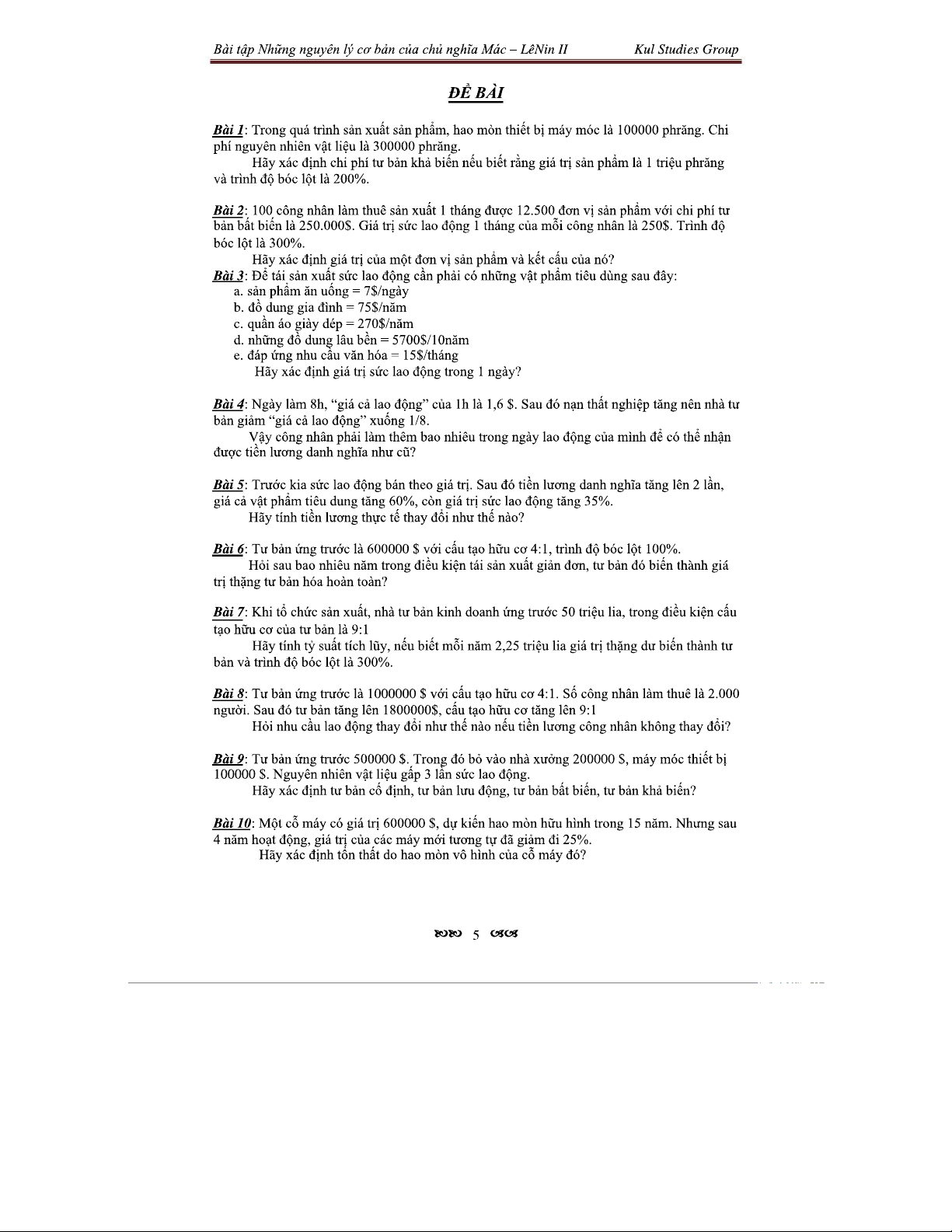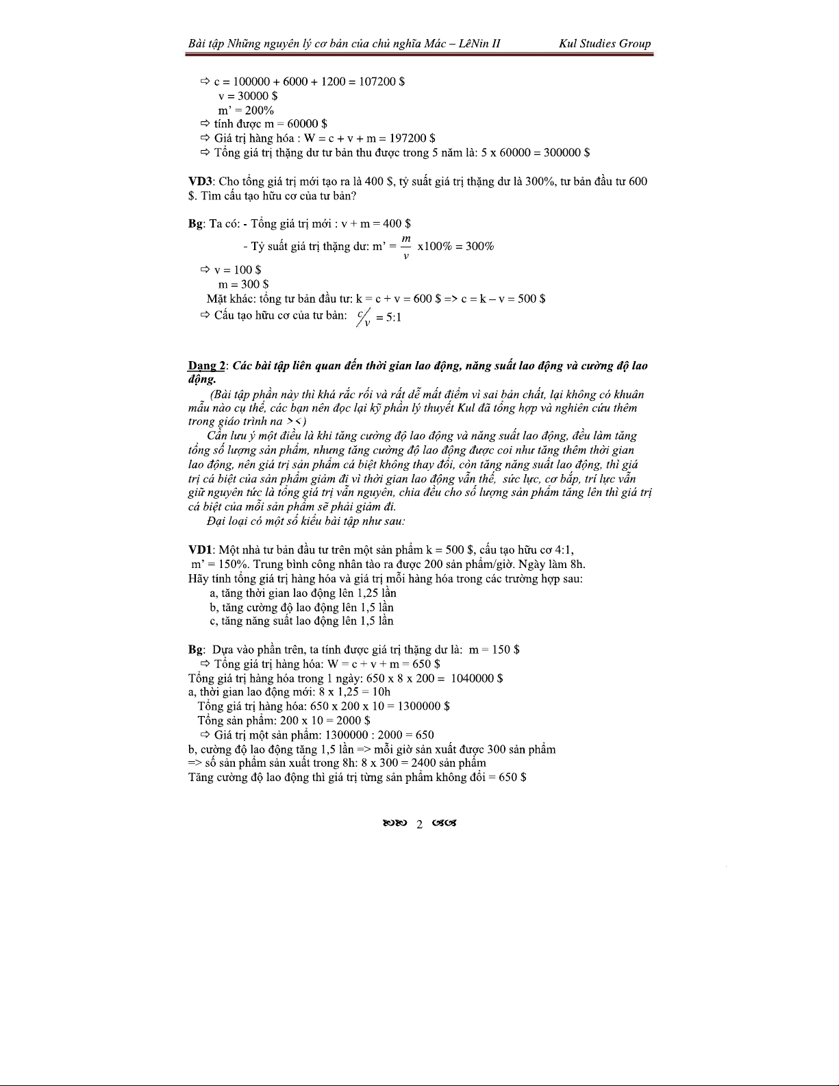 Bài Tập Về Giá Trị Thặng Dư Và Cấu Tạo Tư Bản II