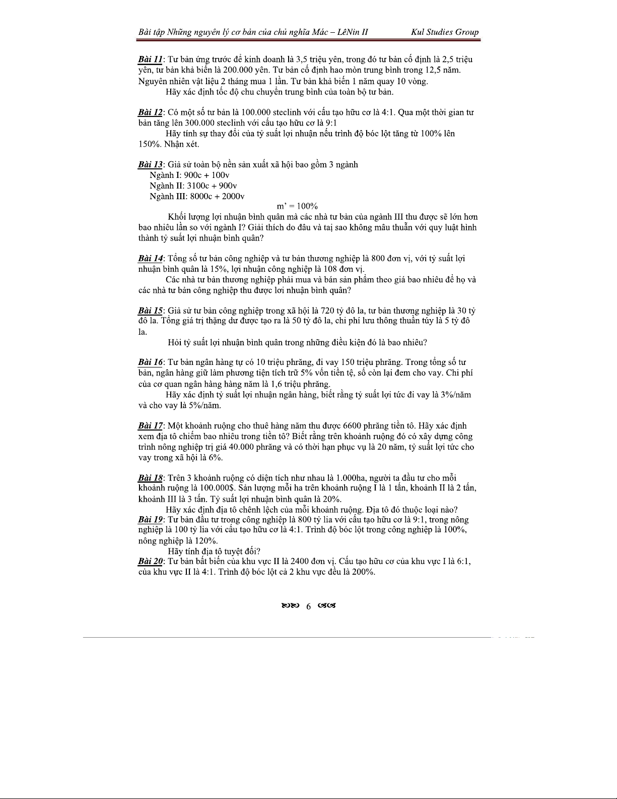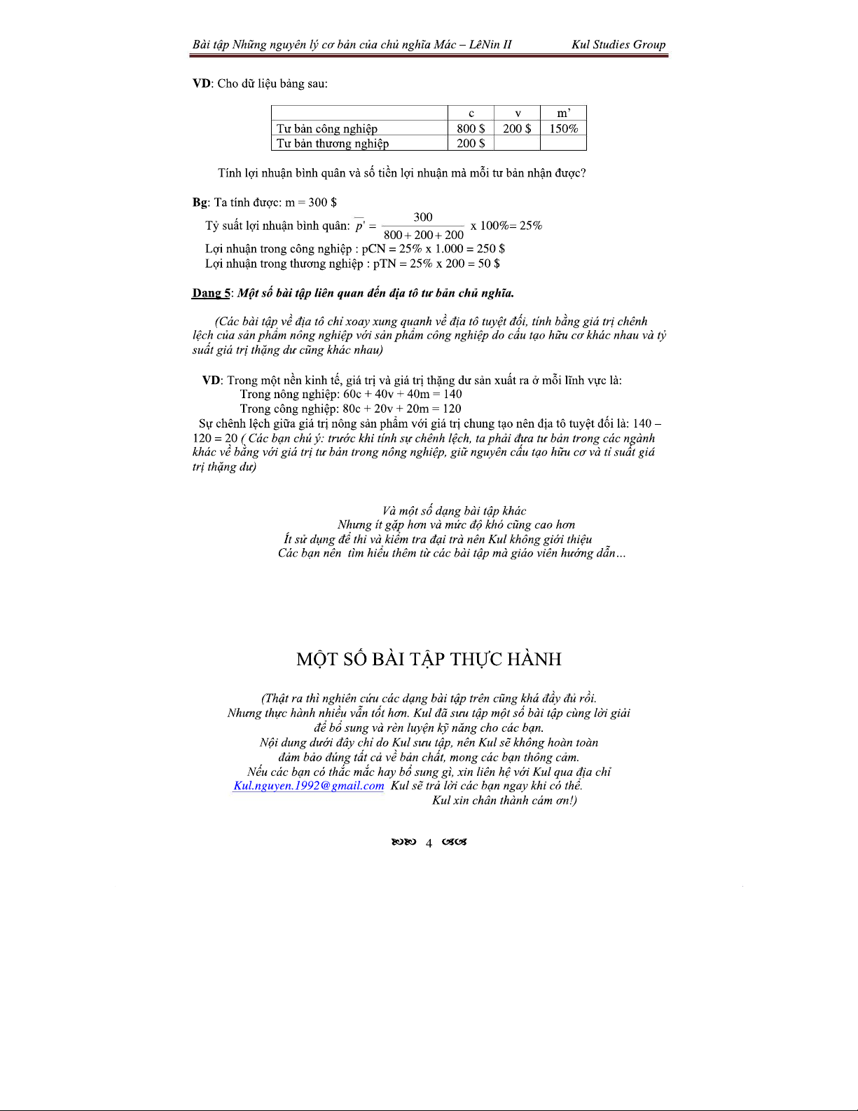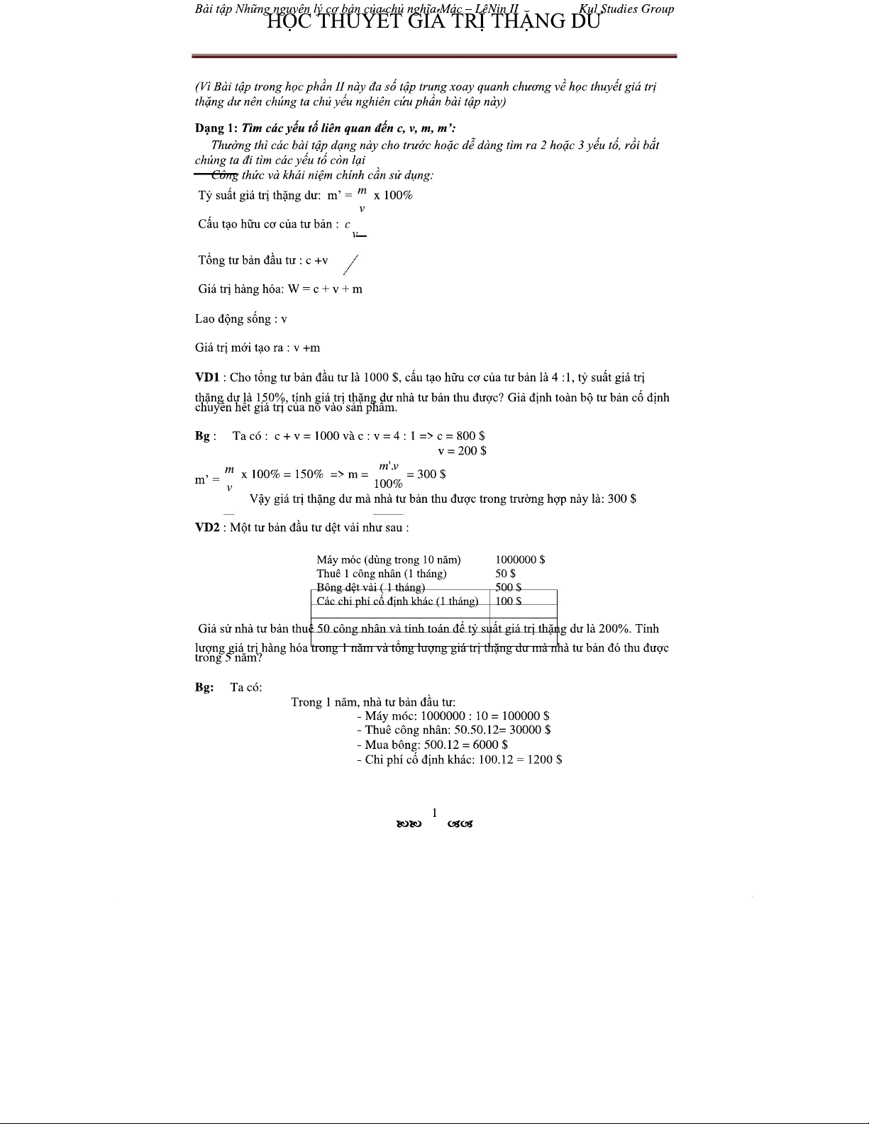 Bài Tập Về Giá Trị Thặng Dư Và Cấu Tạo Tư Bản II