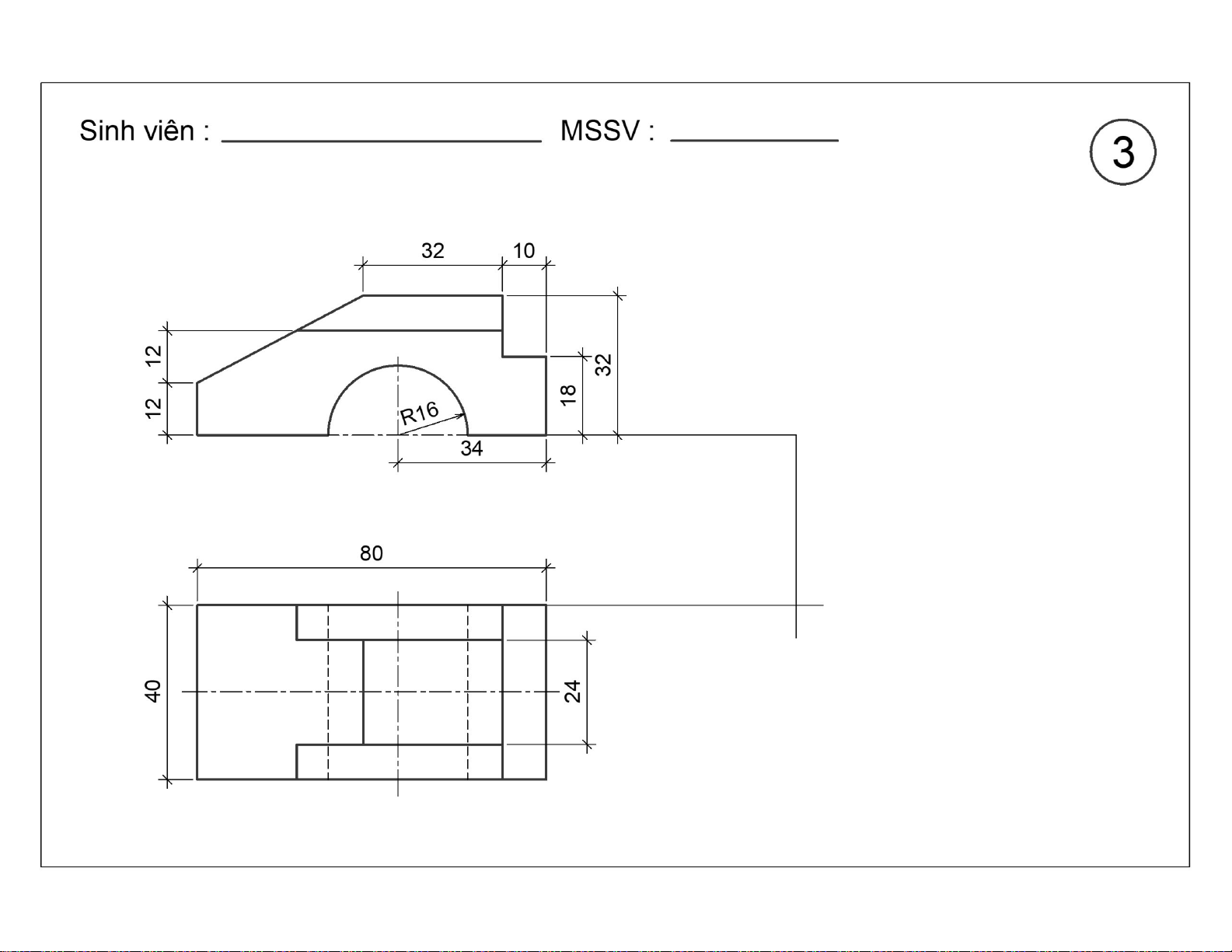 Bài tập vẽ hình chiếu thứ 3 | Đại học Kiến trúc Thành phố Hồ Chí Minh