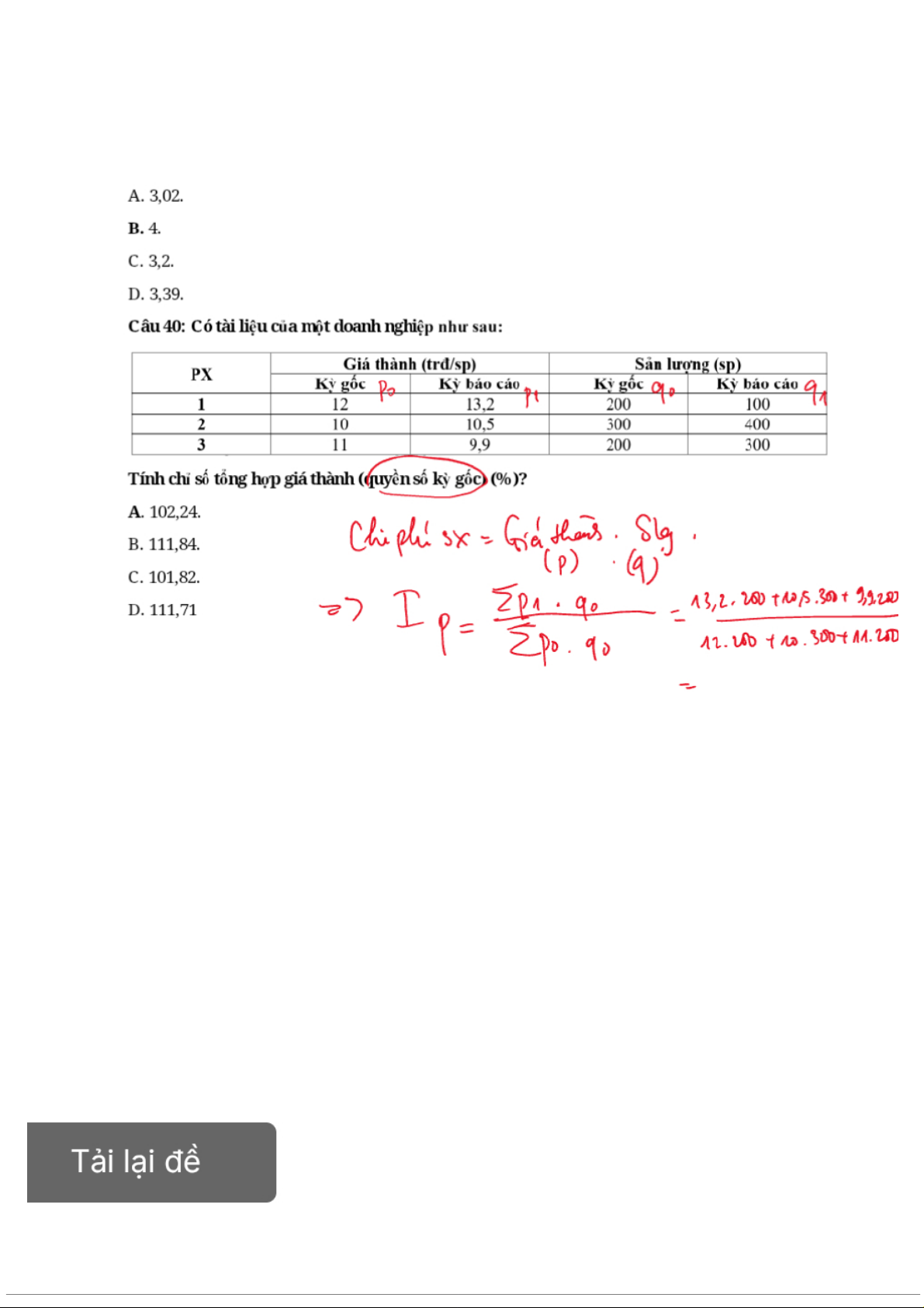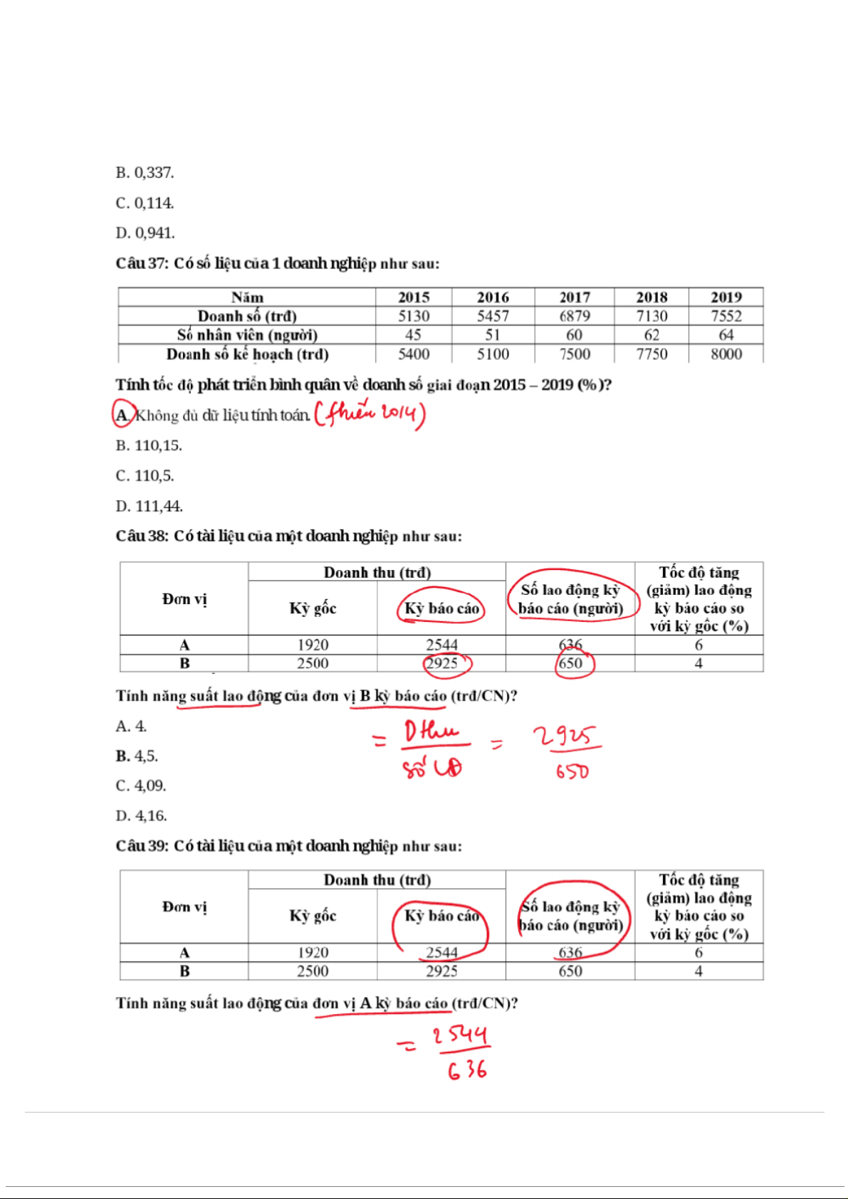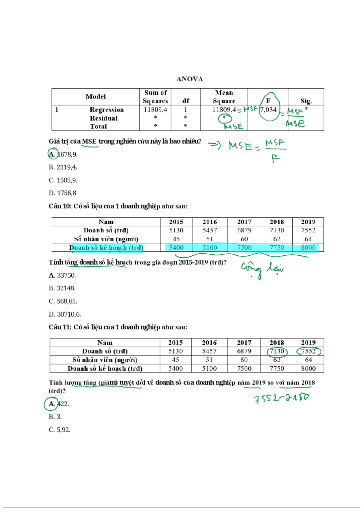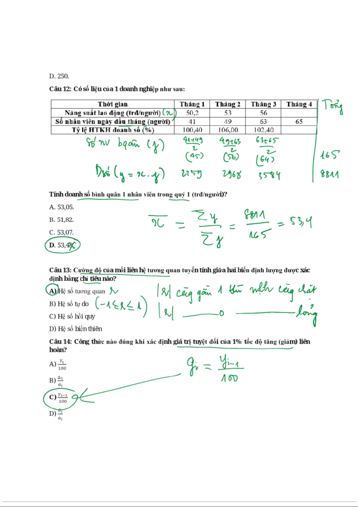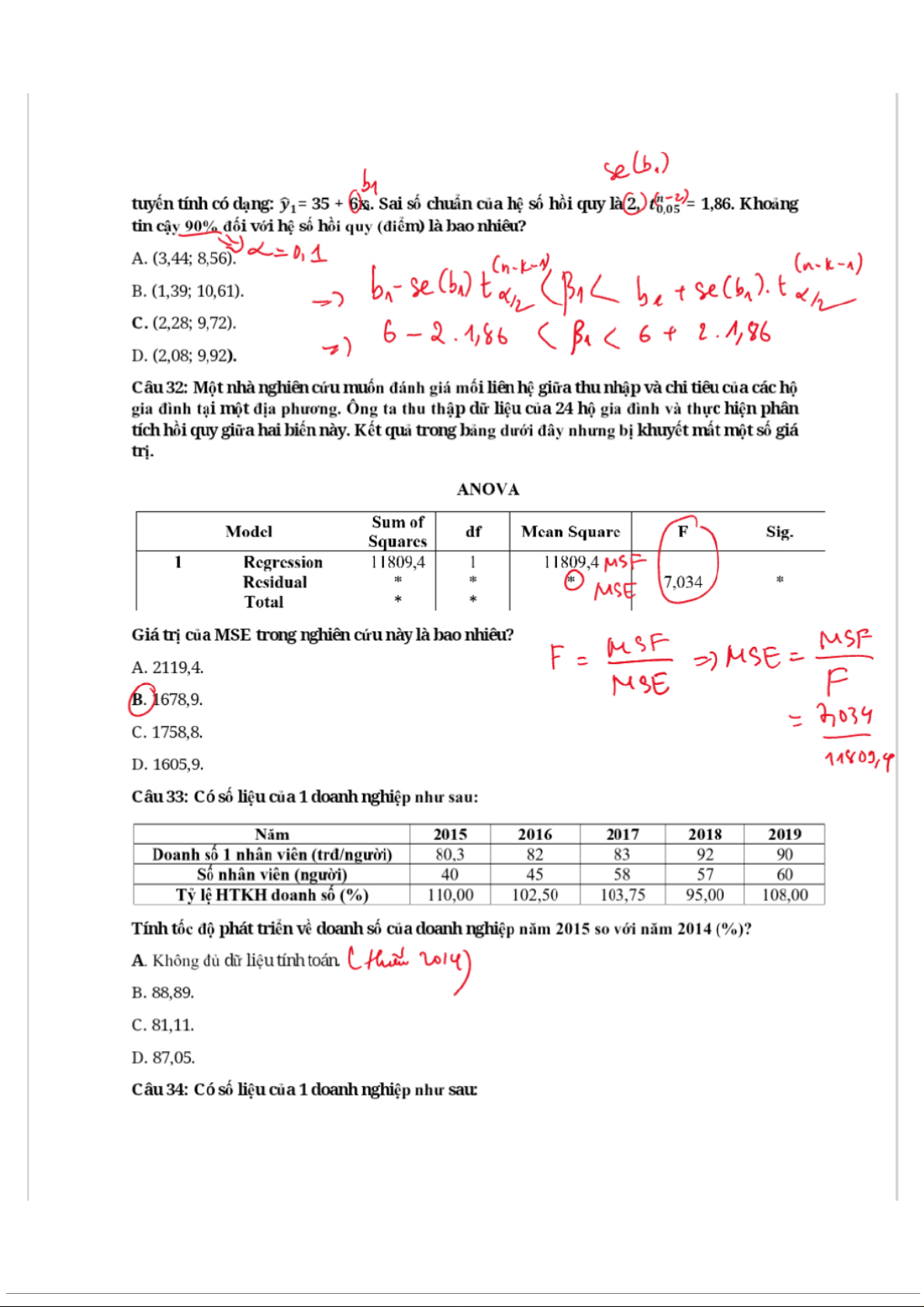 Đề kiểm tra môn Thống kê trong kinh tế và kinh doanh | Trường Đại học Kinh Tế Quốc Dân
