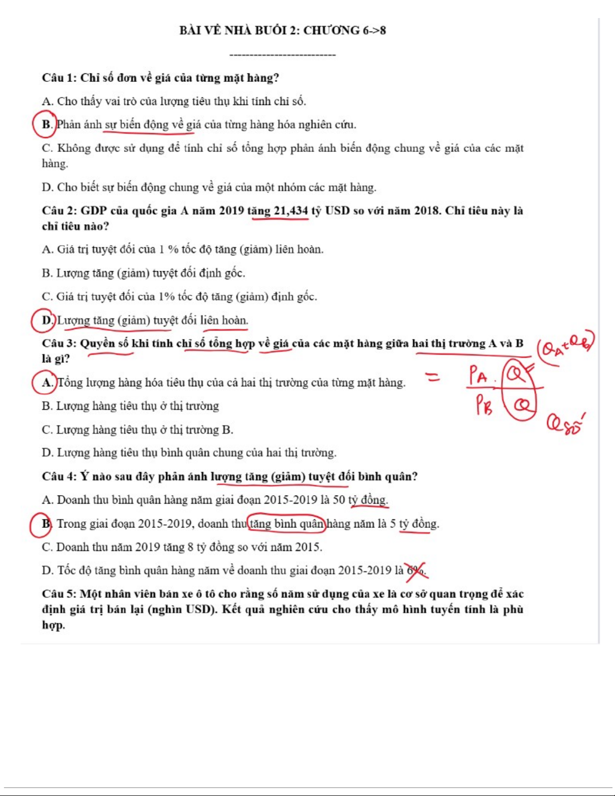Bài tập về nhà Chương 6-8: Phân Tích Chỉ Số và Dữ Liệu Doanh Nghiệp môn Thống kê trong kinh tế và kinh doanh | Trường Đại học Kinh tế Quốc dân