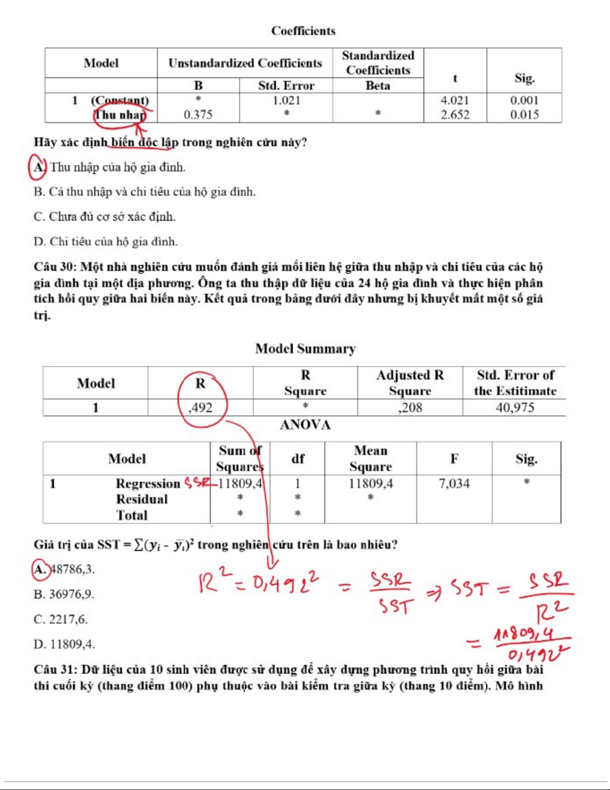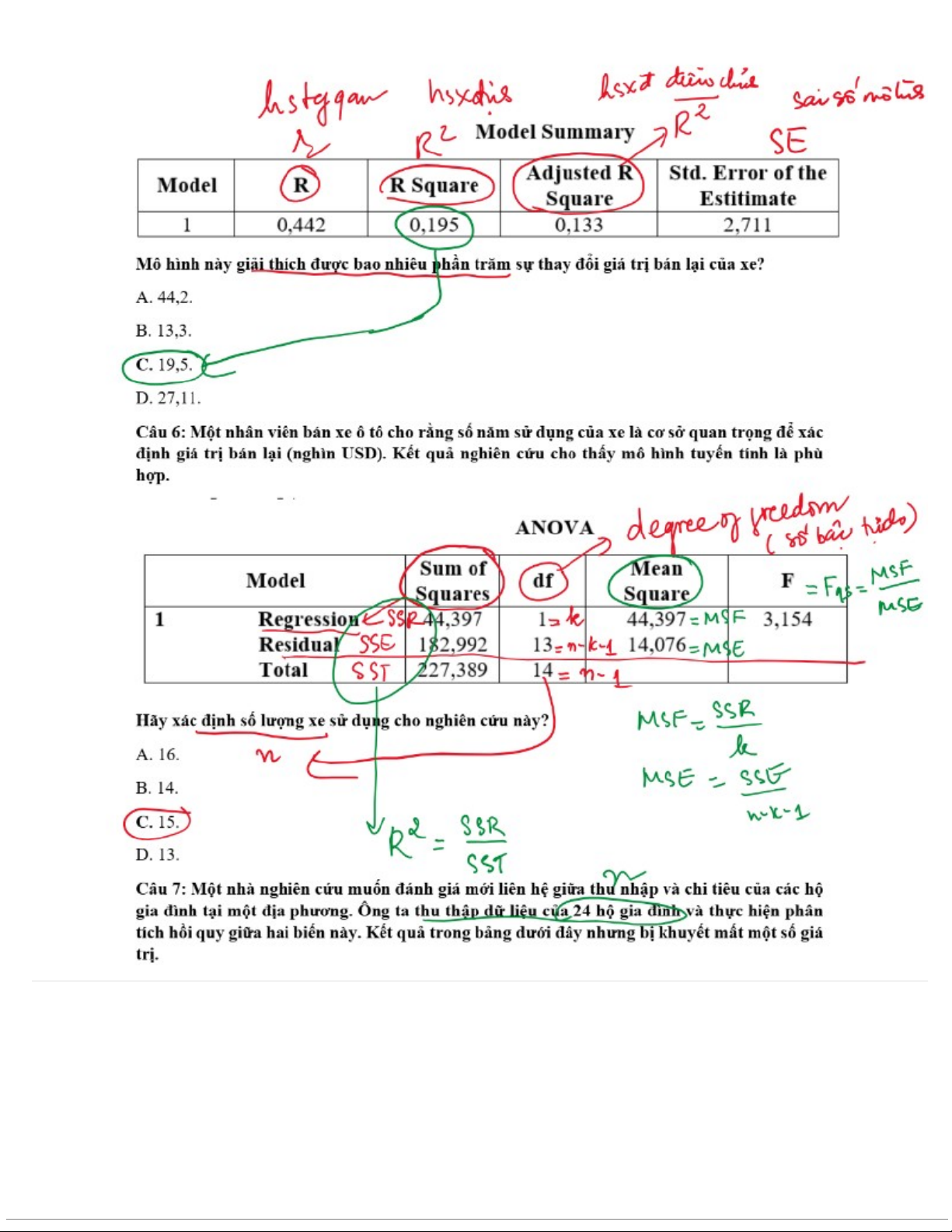 Ôn tập nhóm Bài Tập Hồi Quy | Thống kê trong kinh tế và kinh doanh | Trường Đại học Kinh tế Quốc dân