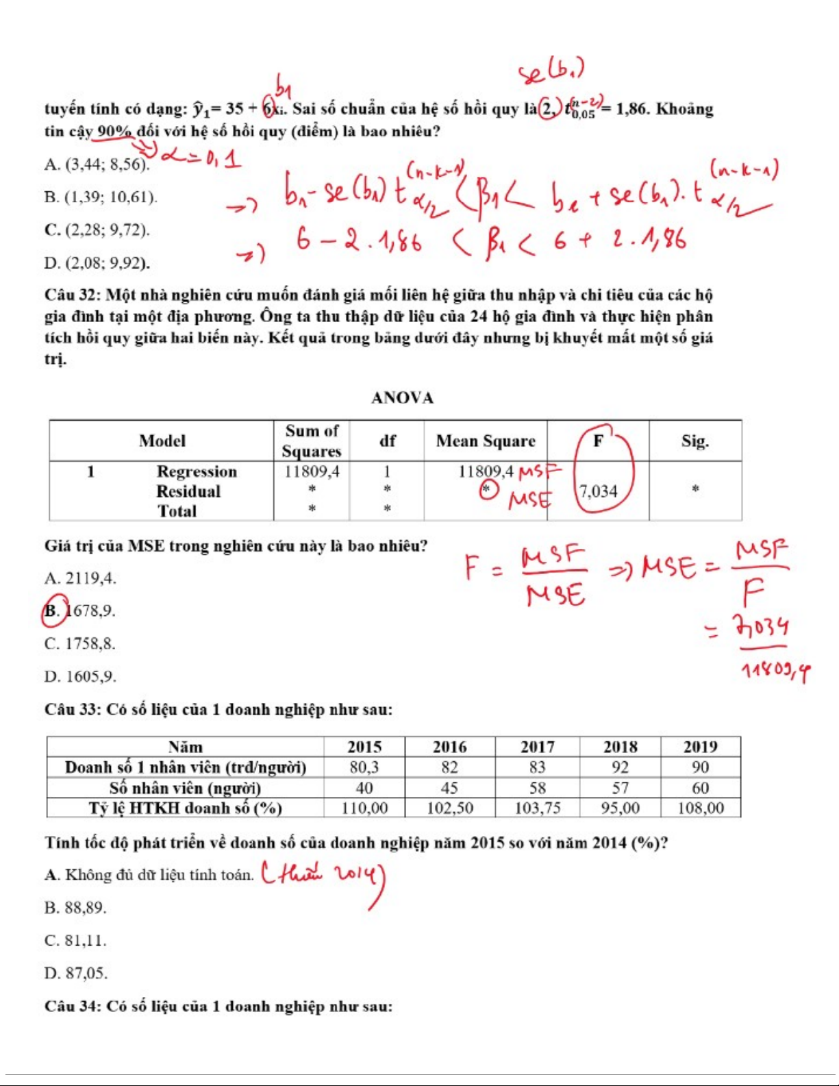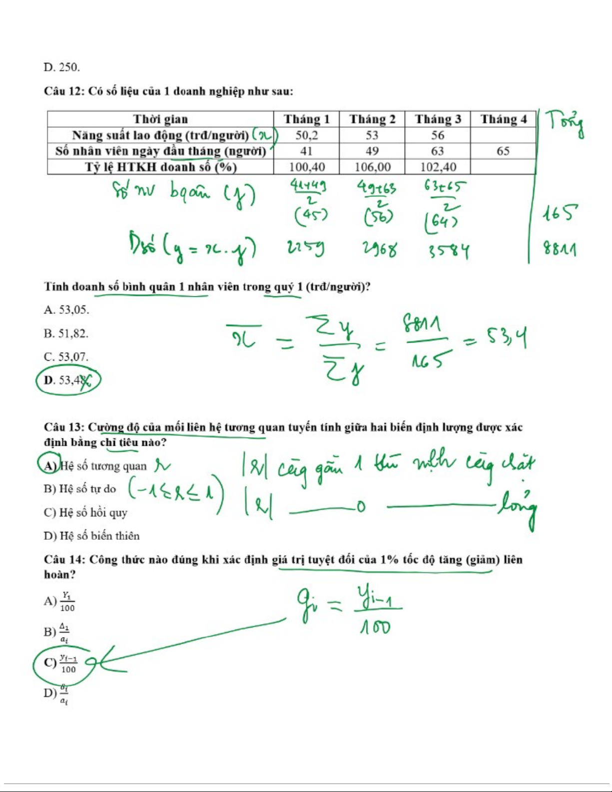 Bài Tập Thống Kê Kinh Doanh | Thống kê trong kinh tế và kinh doanh | Trường Đại học Kinh tế Quốc dân