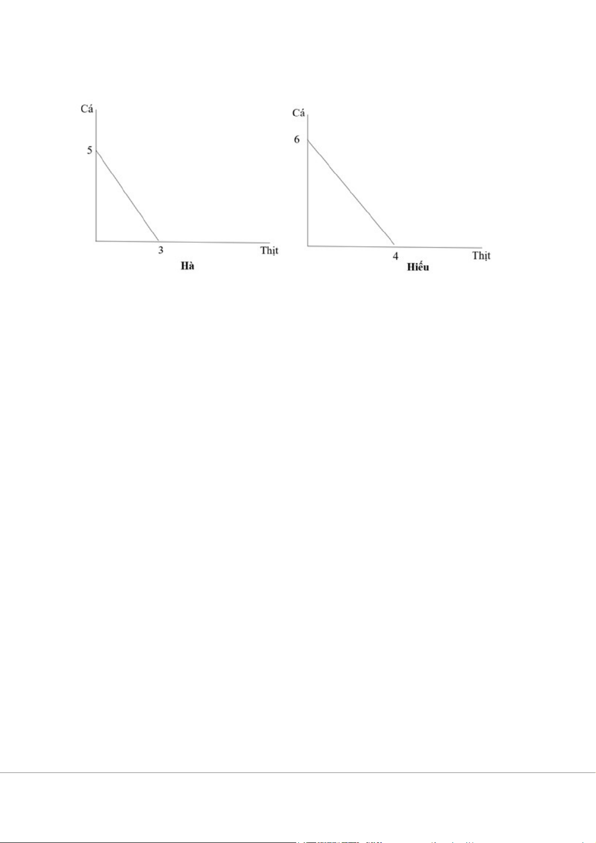 Câu 34. Hà và Hiếu có khả năng sản xuất thịt và cá với đường giới hạn khả năng sản xuất như
