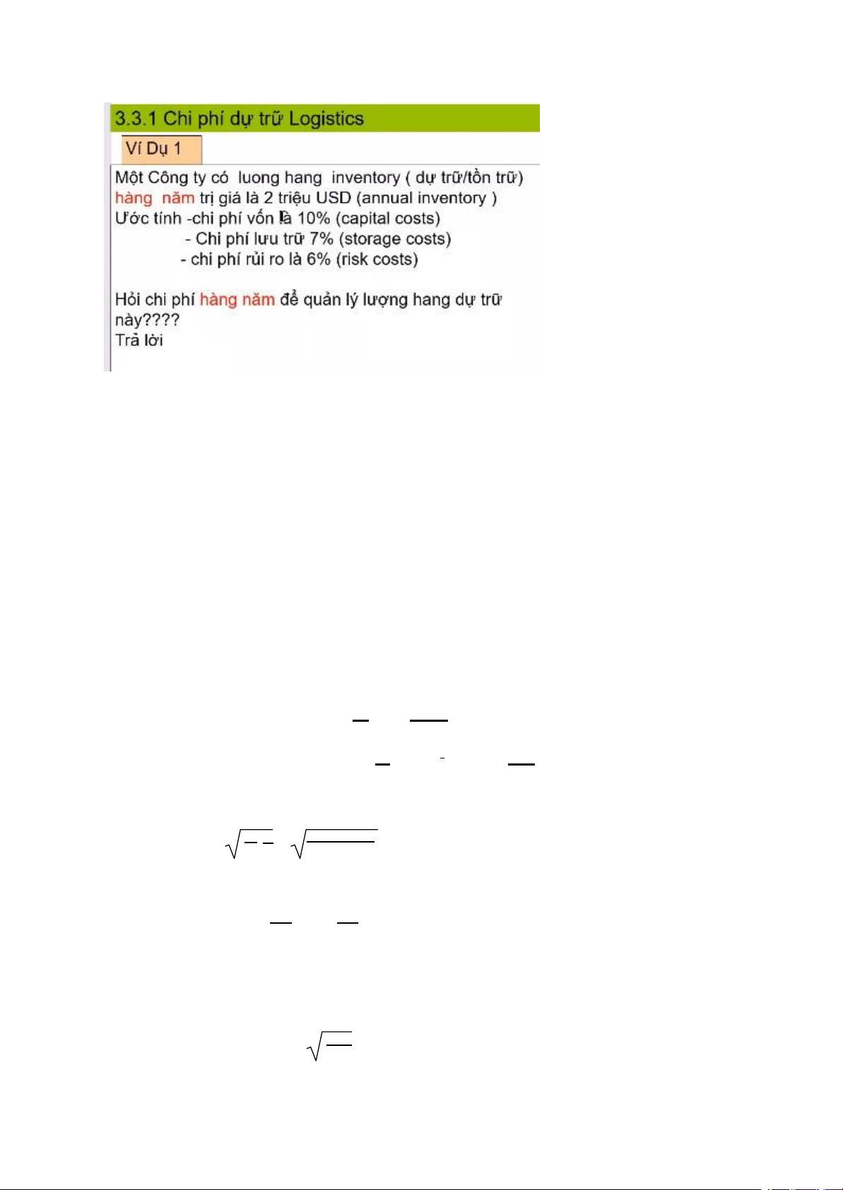 3. TC tồn kho = Cđh + Clk = � *S+ �* *H = 20*240 *40+ 124 *25%*100 = 3098,39 * 2 124 2 USD
