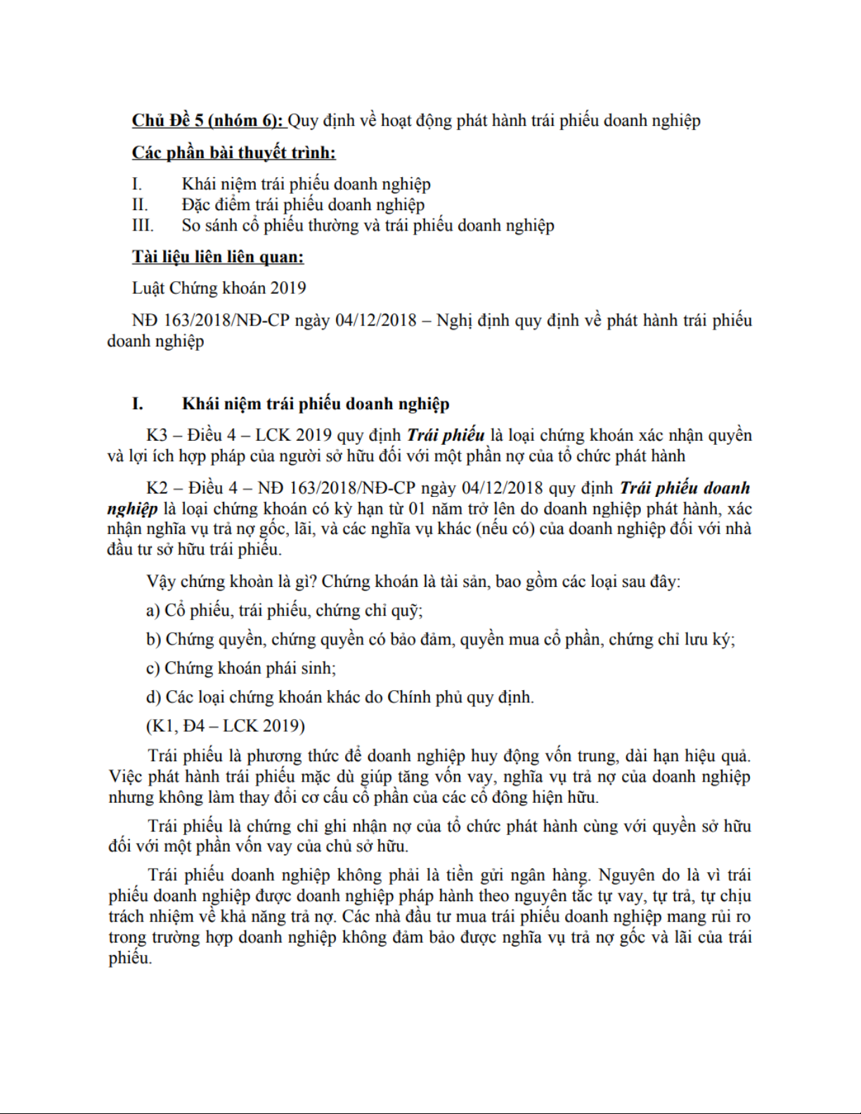 K3 - Điều 4 - LCK 2019 quy định Trái phiếu là loại chứng khoá xác nhận quyền và lợi ích hợp pháp của người sở hữu đối với một phần nợ của tổ chức phát hành. Tài liệu được sưu tầm gồm 7 trang, giúp các bạn ôn luyện và phục vụ cho việc học tập, đạt kết quả tốt. Mời các bạn đón xem!