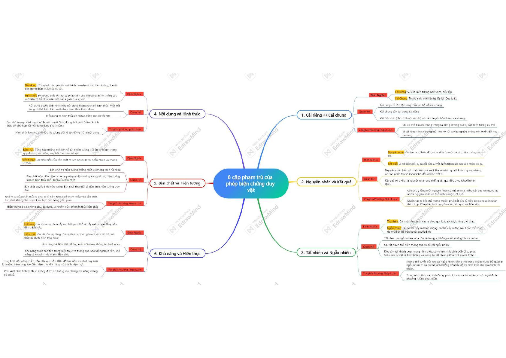 Bài tập vẽ sơ đồ tư duy. 6 cặp phạm trù của phép biện chứng duy vật